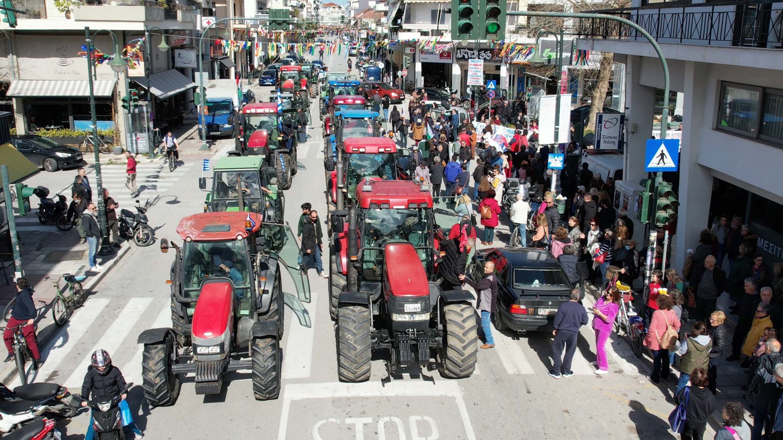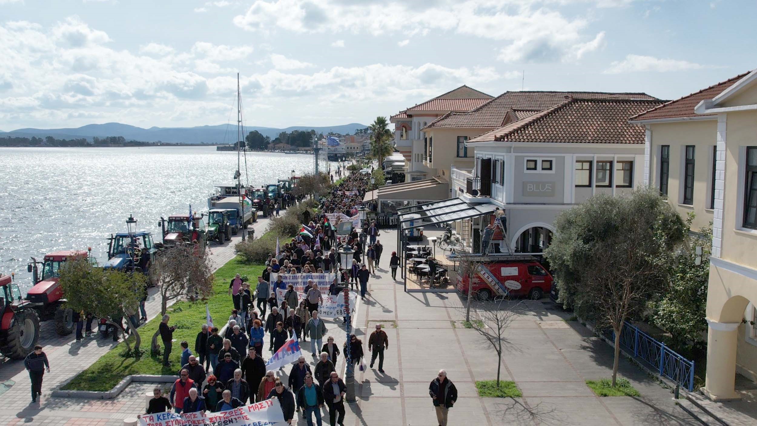 Στη συνέχεια, με επικεφαλής τους αγρότες πραγματοποιήθηκε μεγάλη και μαχητική πορεία στους δρόμους της Πρέβεζας.