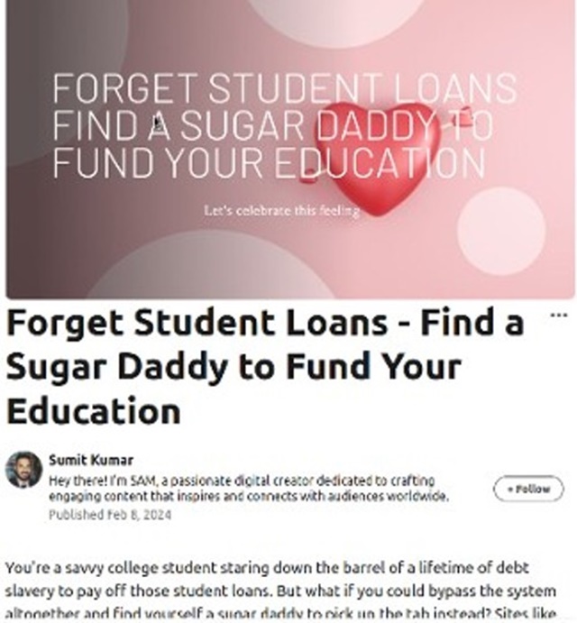 2_sugar_daddies«Ξεχάστε τα φοιτητοδάνεια. Βρείτε έναν sugar daddy να χρηματοδοτήσει την εκπαίδευσή σας»