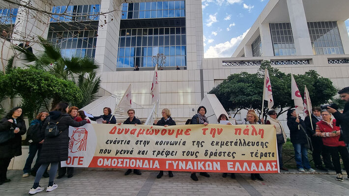 Την ίδια στιγμή, έξω από το Εφετείο, πραγματοποιήθηκε μαζική παράσταση διαμαρτυρίας από την Ομοσπονδία Γυναικών Ελλάδας (ΟΓΕ), το Σωματείο Μισθωτών Δικηγόρων και Φοιτητικούς Συλλόγους ενάντια στην επαίσχυντη και εξοργιστική εισαγγελική πρόταση που έχει προκαλεί σωρεία αντιδράσεων, καθώς ουσιαστικά προσπαθεί να υπερασπιστεί, ξεπλένοντάς τους, βιαστές και μαστροπούς και ταυτόχρονα ισχυρίζεται ότι ένα ανήλικο 12χρονο κορίτσι εκδίδεται με δική του «επιλογή».