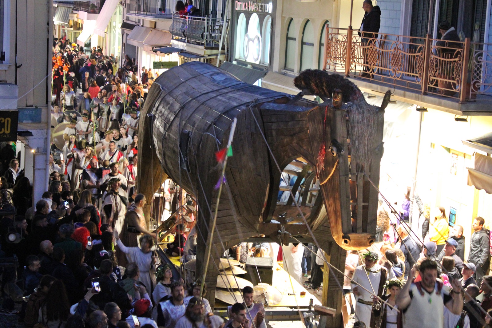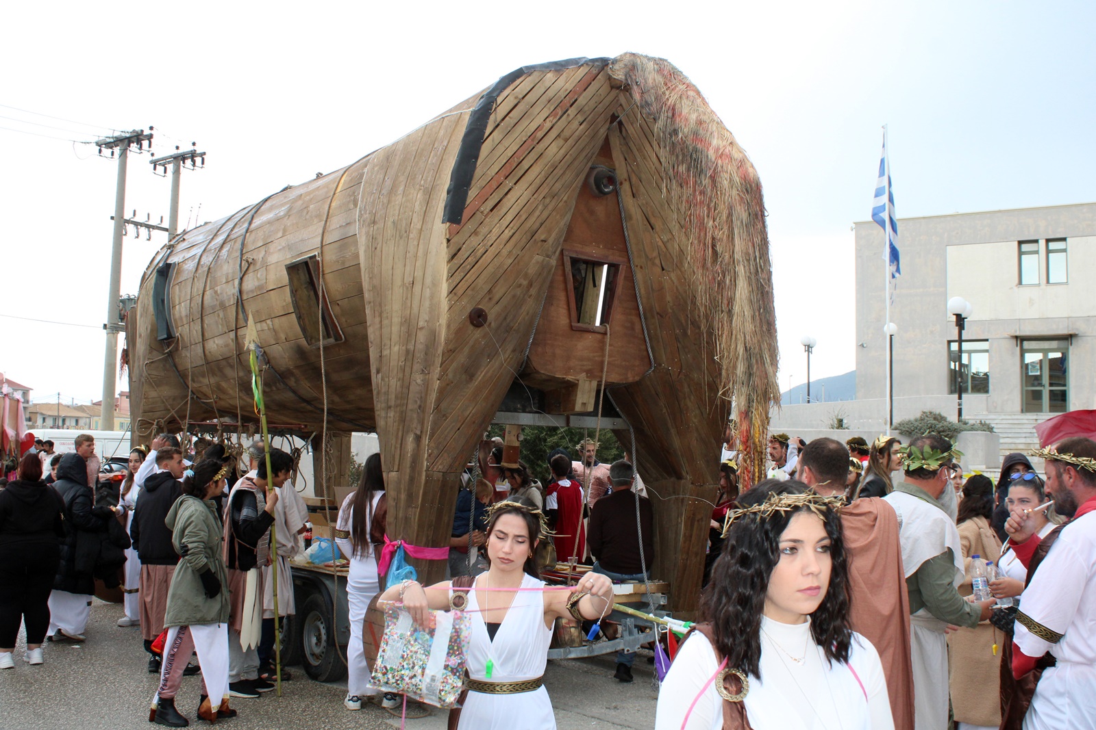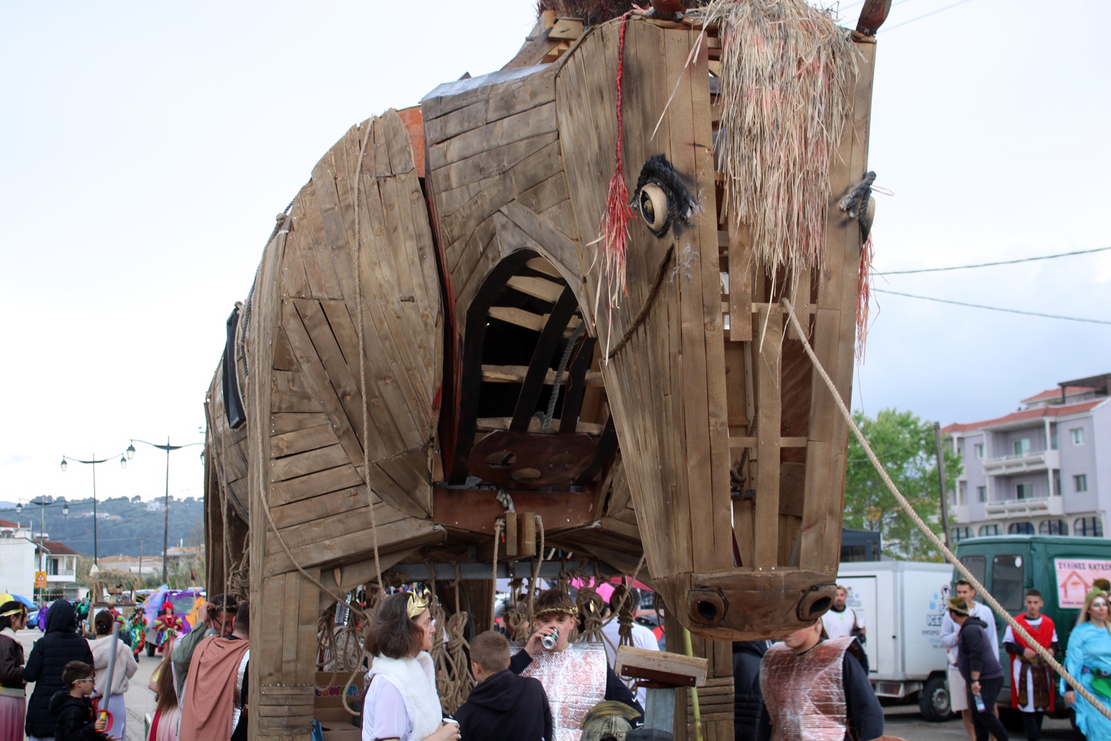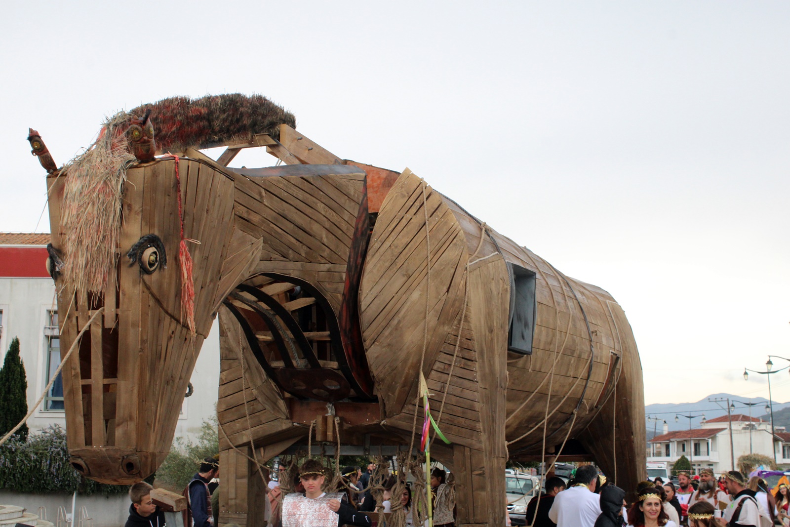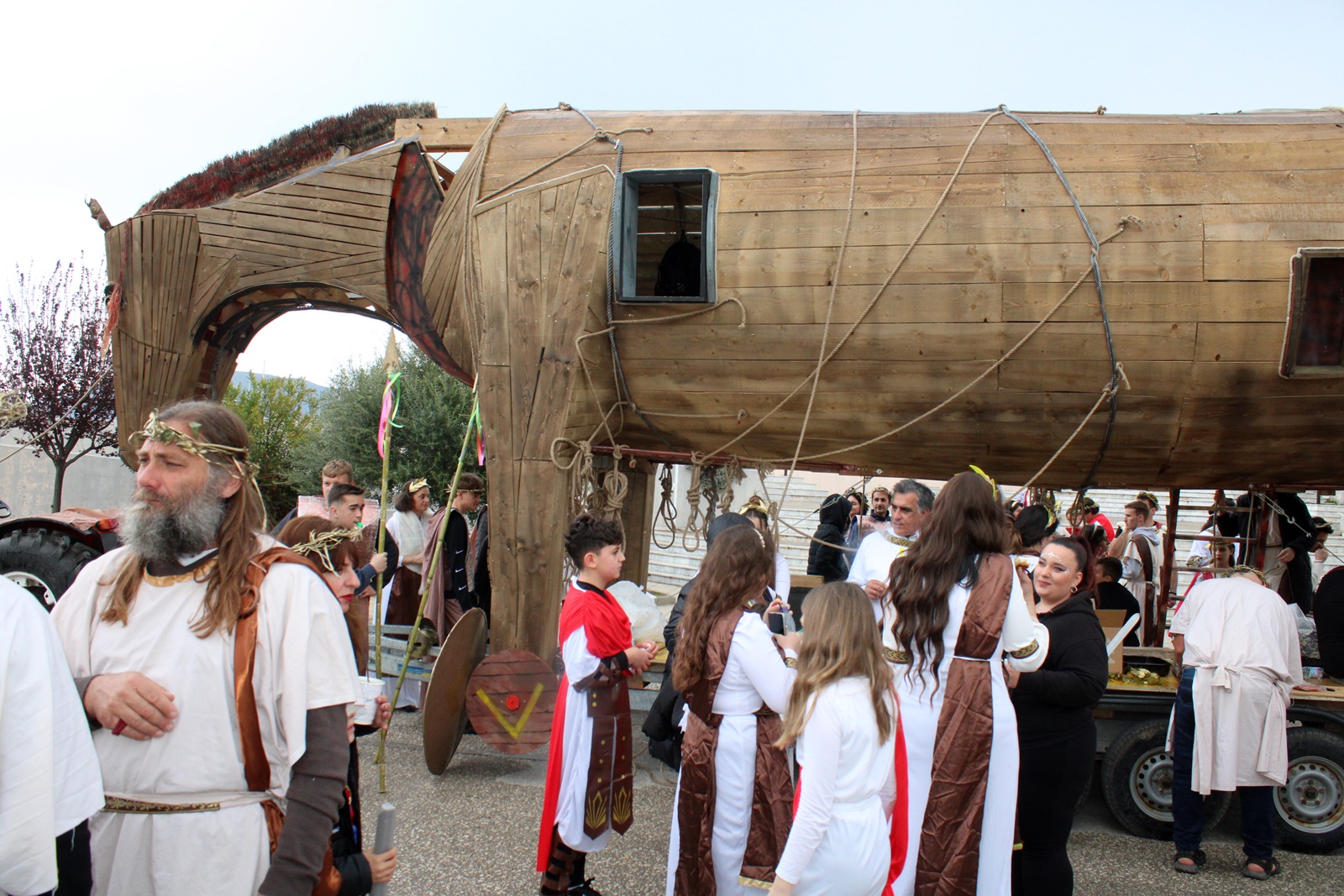 Την παράσταση έκλεψαν τα παιδιά από τον Σύβρο με τον επιβλητικό ξύλινο δούρειο ίππο τους, που θα ζήλευε ακόμη και ο ίδιος ο Οδυσσέας.