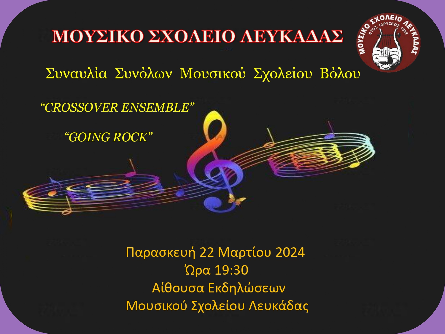 Την Παρασκευή 22 Μαρτίου το Μουσικό Σχολείο Λευκάδας θα φιλοξενήσει το Μουσικό Σχολείο Βόλου.