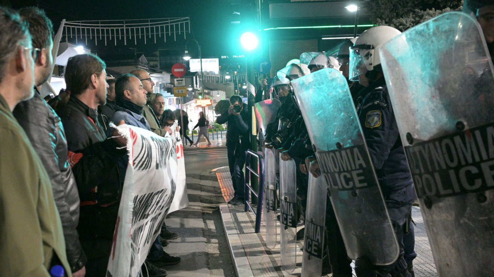 Όταν αντιπροσωπεία των διαδηλωτών και των εκλεγμένων στην τοπική διοίκηση με τη «Λαϊκή Συσπείρωση» ζήτησαν να περάσουν μέσα στο ωδείο για να εκφράσουν την διαμαρτυρία τους, οι δυνάμεις της αστυνομίας είχαν σαφή εντολή να τους εμποδίσουν πάση θυσία.