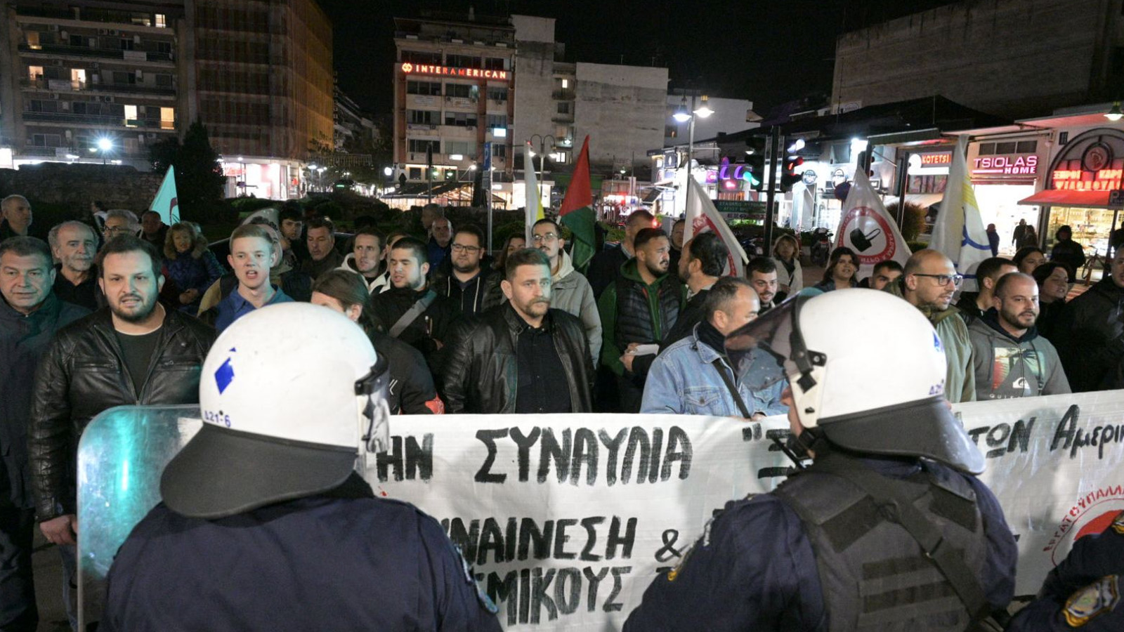 Την βία και την καταστολή κατήγγειλε ο πρόεδρος του Εργατικού Κέντρου Λάρισας, Γιάννης Σκόκας που ήταν ένας από τους διαδηλωτές που δέχτηκε χτυπήματα από τα ΜΑΤ. «Ντροπή τους, να αποχωρήσουν τώρα οι δυνάμεις τη αστυνομίας» τόνισε ο Γ. Σκόκας τονίζοντας ότι «οι ΗΠΑ ευθύνονται για την δολοφονία 13.000 παιδιών στην Παλαιστίνη» και πως «δεν περνάει το ξέπλυμά τους σε αυτή την πόλη και αυτό το μήνυμα τους έστειλε ο λαός απόψε. Δεν σας θέλει ο λαός πάρτε τις βάσεις σας και μπρος…».