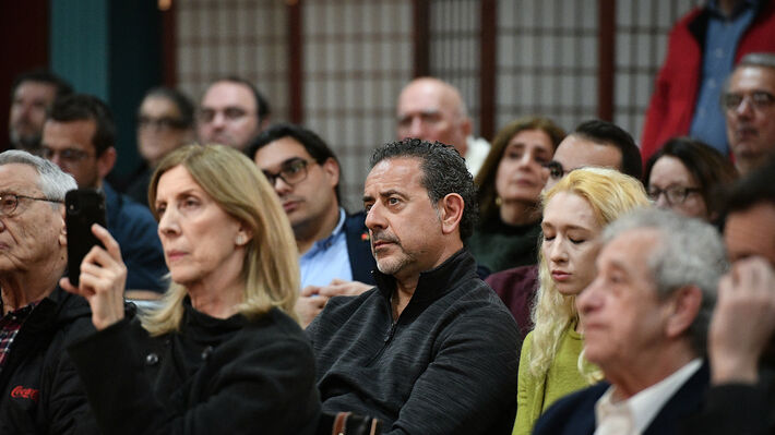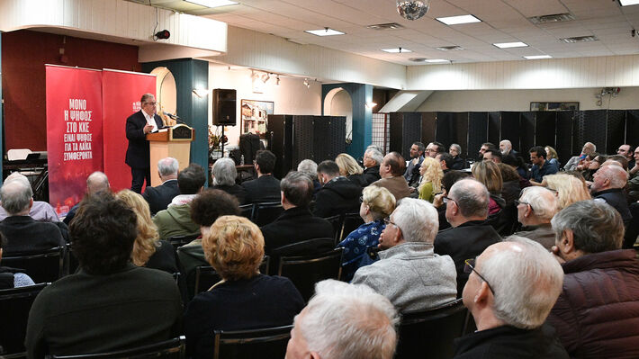 Δεκάδες ομογενείς, εργαζόμενοι, επιστήμονες, νέοι και μεγαλύτεροι έδωσαν το «παρών» στην αίθουσα Kefalos Society of America δείχνοντας τους δεσμούς του Κόμματος με τους Έλληνες μετανάστες που όπως σημείωσε ο Δ. Κουτσούμπας όχι μόνο έχουν βάλει ανεξίτηλη τη σφραγίδα τους στην ανάπτυξη του εργατικού κινήματος αυτής της χώρας, αλλά και «έχουν να δώσουν πολλά και σήμερα και στο μέλλον, γιατί η ανασυγκρότηση του εργατικού-λαϊκού και του κομμουνιστικού κινήματος σε κάθε χώρα, η αντεπίθεση των λαών ενάντια στη βαρβαρότητα, είναι ανάγκη που γίνεται κάθε μέρα και πιο επιτακτική.