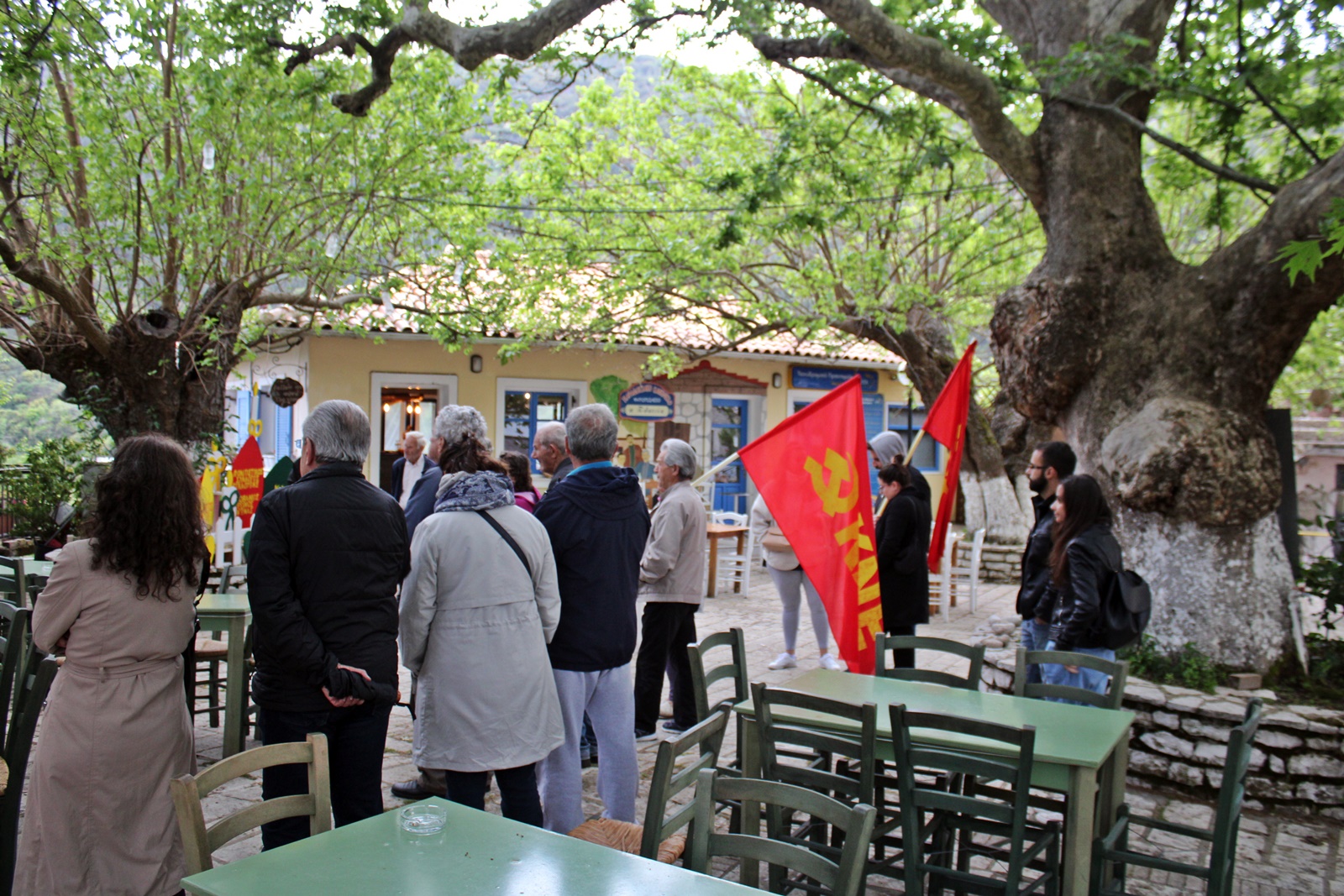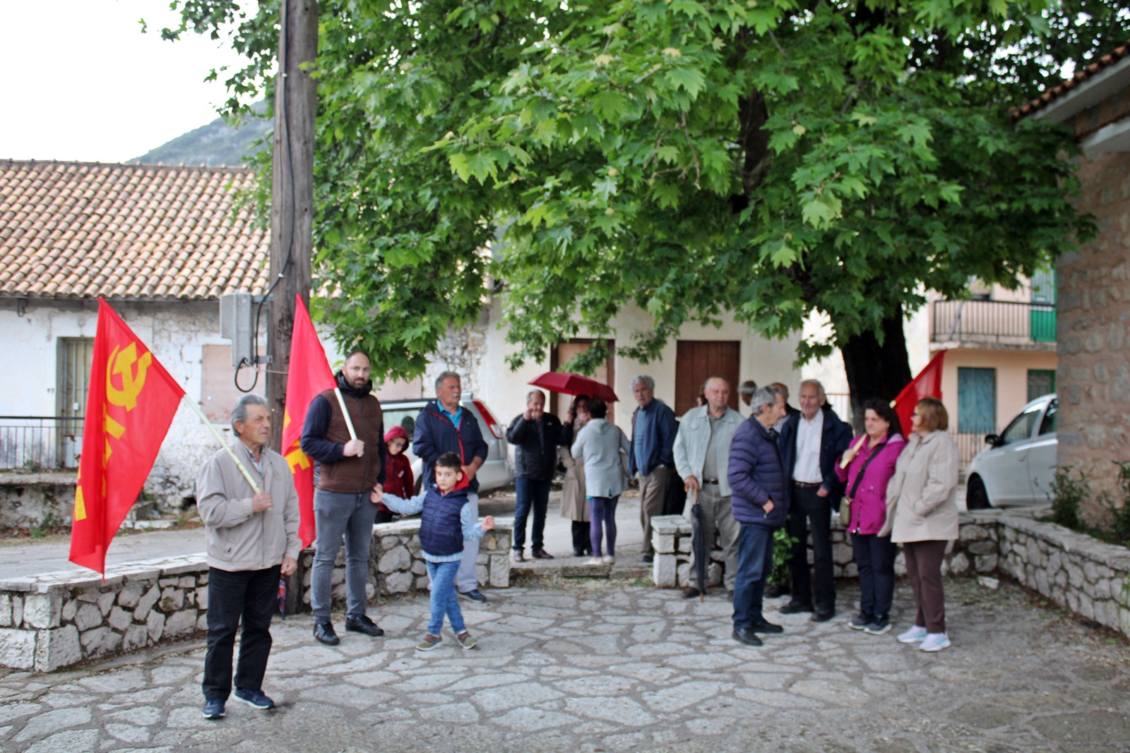 Το στεφάνι στο μνημείο εκ μέρους της ΤΟ Λευκάδας του ΚΚΕ κατάθεσε ο Λευτέρης Θερμός. Προηγήθηκε σύντονη ομιλία από τον Βαγγέλη Βερροιώτη, μέλος της Επιτροπής Περιοχής Βορειοδυτικής Ελλάδας του ΚΚΕ. Την κεντρική ομιλία στην πλατεία του χωριού έκανε ο Νώντας Μωραΐτης, μέλος του Γραφείου της ΤΕ Λευκάδας του ΚΚΕ.