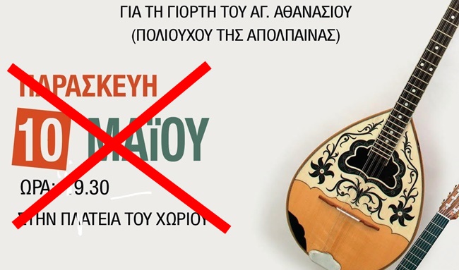 Αναβάλλεται λόγω καιρού η Λαϊκή-Δημοτική βραδιά στην Απόλπαινα για τη γιορτή του Αγ. Αθανασίου