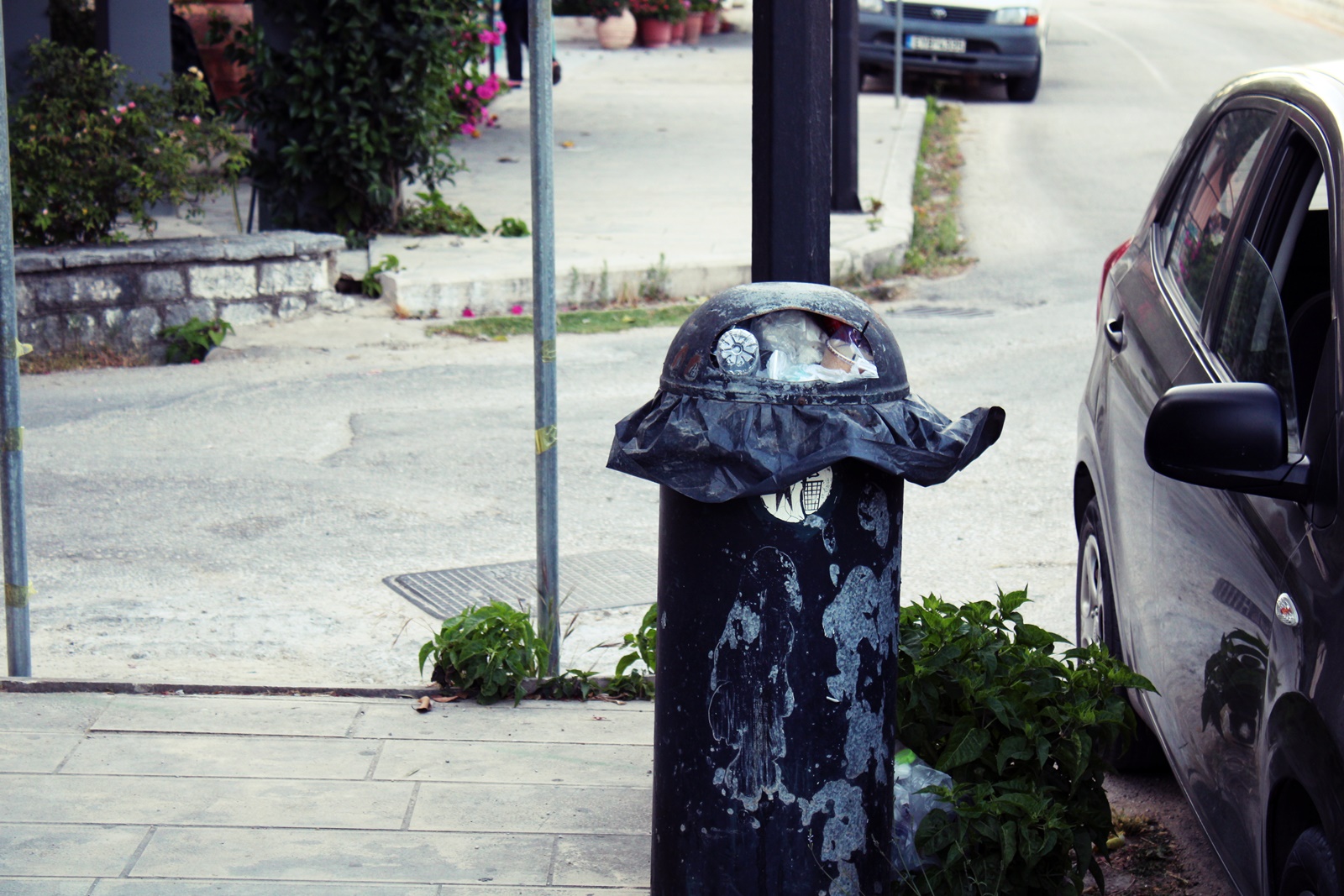 Μπλε κάδους ανακύκλωσης δεν έχετε στο χωριό σας; Ή έχετε αλλά δεν ξέρετε τι θα πει ανακύκλωση, γιατί βλέπω στους τέσσερις μικρούς κάδους, πολλά ανακυκλώσιμα. Για δε το άδειασμα αυτών των μικρών κάδων, ας βάλουν το χεράκι τους οι επαγγελματίες. Δεν είναι και μεγάλος κόπος, να αδειάσουν μια-δύο φορές την ημέρα τις μαύρες σακούλες στους μεγάλους κάδους.