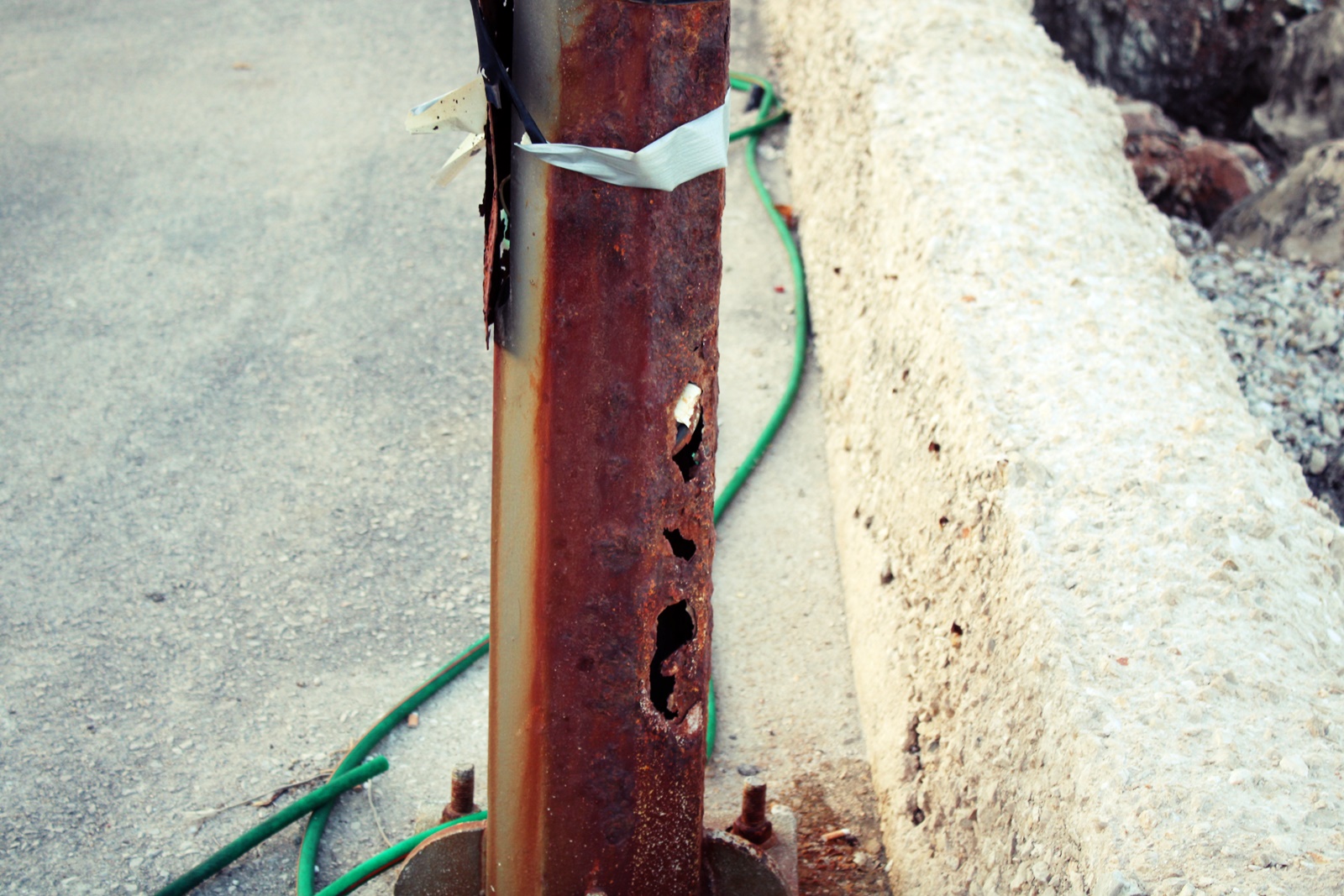 Δύο τουλάχιστον μεταλλικές κολόνες στην τσιμεντένια προβλήτα του λιμανιού της Νικιάνας έχουν σαπίσει από τη διάβρωση και χρήζουν αντικατάστασης ενώ σε μία από αυτές εξέχουν ηλεκτροφόρα καλώδια σε ύψος μάλιστα προσιτό για μικρά παιδιά.