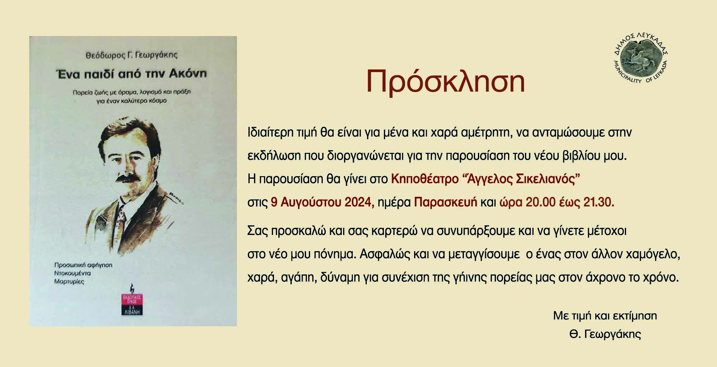 Ιδιαίτερη τιμή θα είναι για μένα και χαρά αμέτρητη, να ανταμώσουμε στην εκδήλωση που διοργανώνεται για την παρουσίαση του νέου βιβλίου μου.