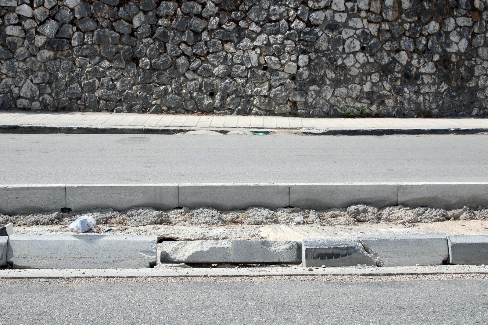 Στο έργο της κατασκευής της διαχωριστικής νησίδας στη Νικιάνα. Είναι λίγο πριν τη στροφή στο «Λιμνί» στο ρεύμα προς Λευκάδα. Κάποιο μεγάλο όχημα θα πέρασε και πήρε σβάρνα το κράσπεδο της υπό κατασκευή νησίδας.