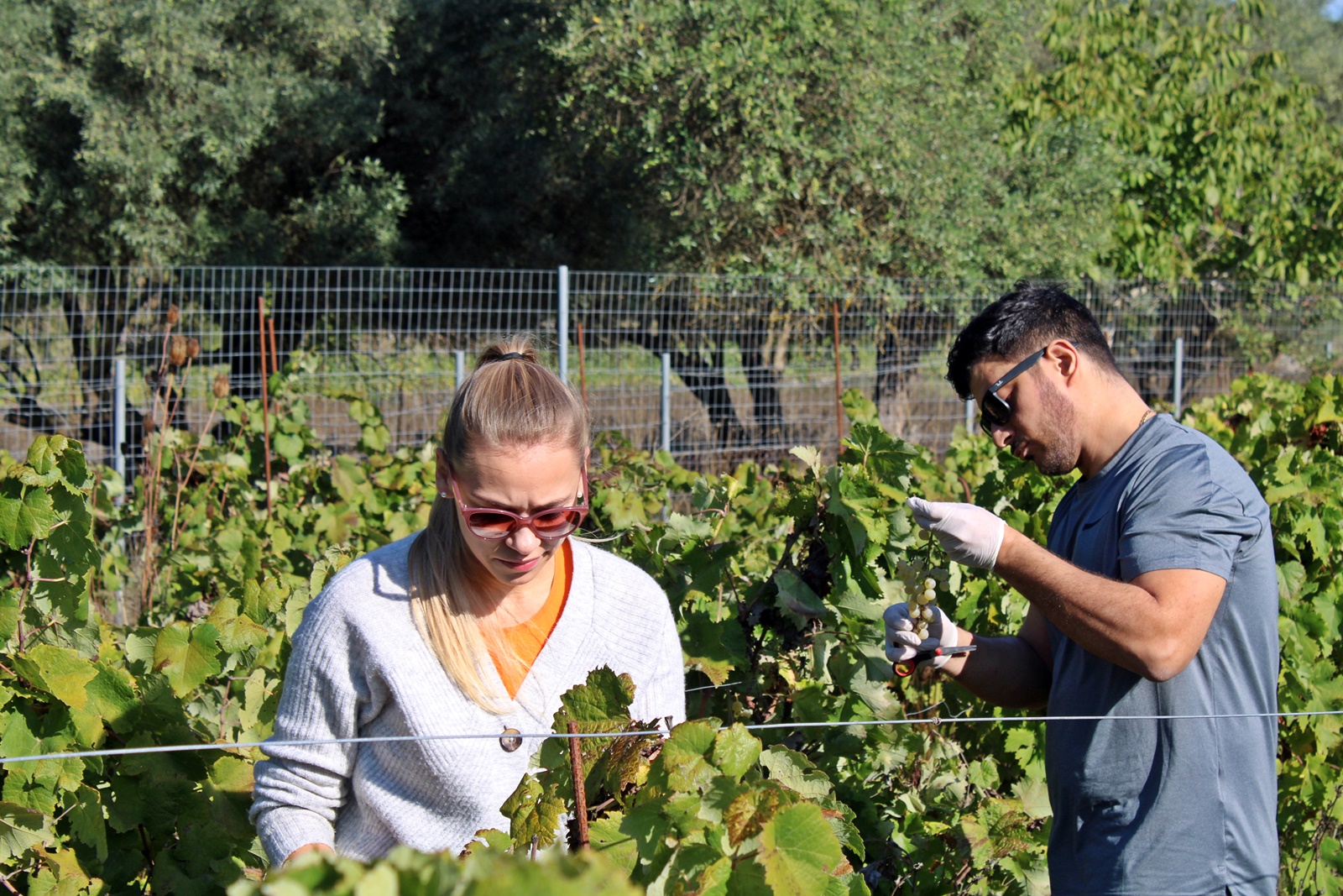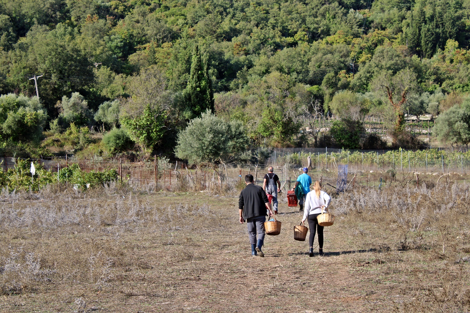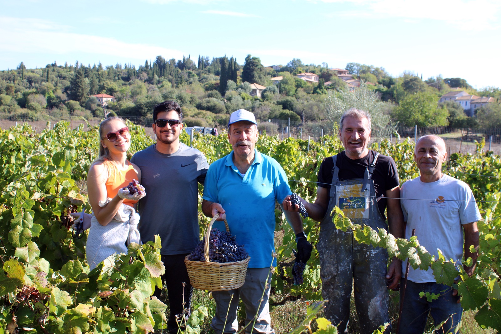 Κάποιες διπλανές νιες αμπελοφυτείες θυμίζουν τοσκανικά τοπία με τα ευθυγραμμισμένα κλήματα και τους ευρύχωρους διαδρόμους για μηχανική καλλιέργεια. Στον τρύγο βοήθησαν ο Ζώης Β., που είναι και ιδιοκτήτης του αμπελιού, ο Γιώργος, ο Λεωνίδας, ο Παναγιώτης και η Μελανή, που παρότι νιόπαντρη μπήκε από μικρή στα βάσανα των αγροτικών δουλειών.. Καλογίνωτο το κρασί!