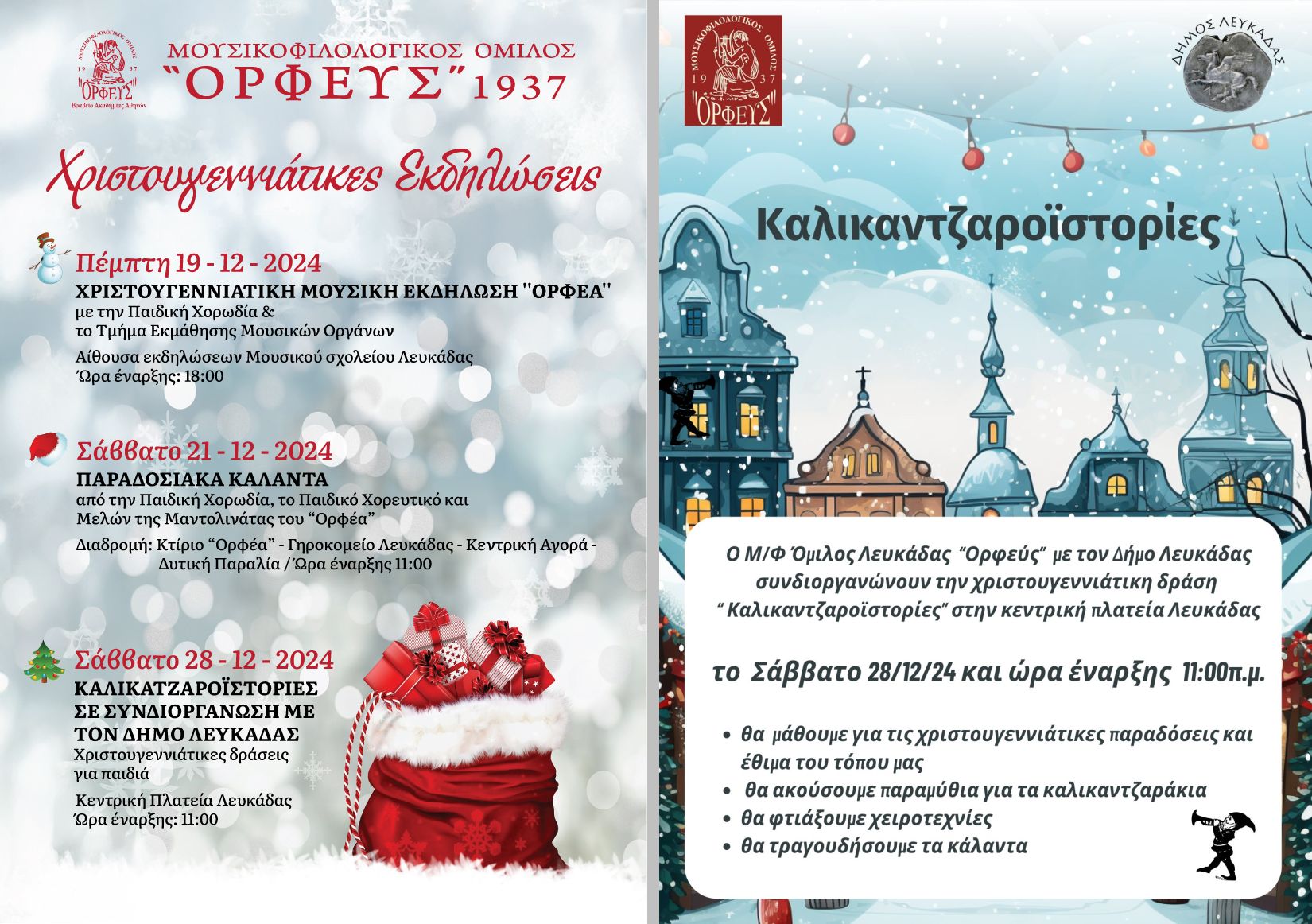 Το πρόγραμμα των Χριστουγεννιάτικων εκδηλώσεων του Μουσικοφιλολογικού Ομίλου Λευκάδας «Ορφεύς»: