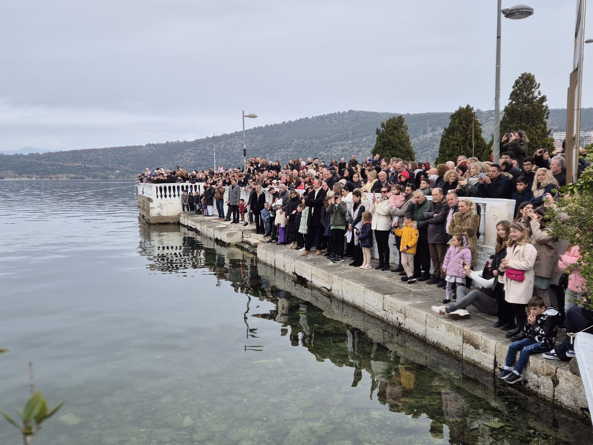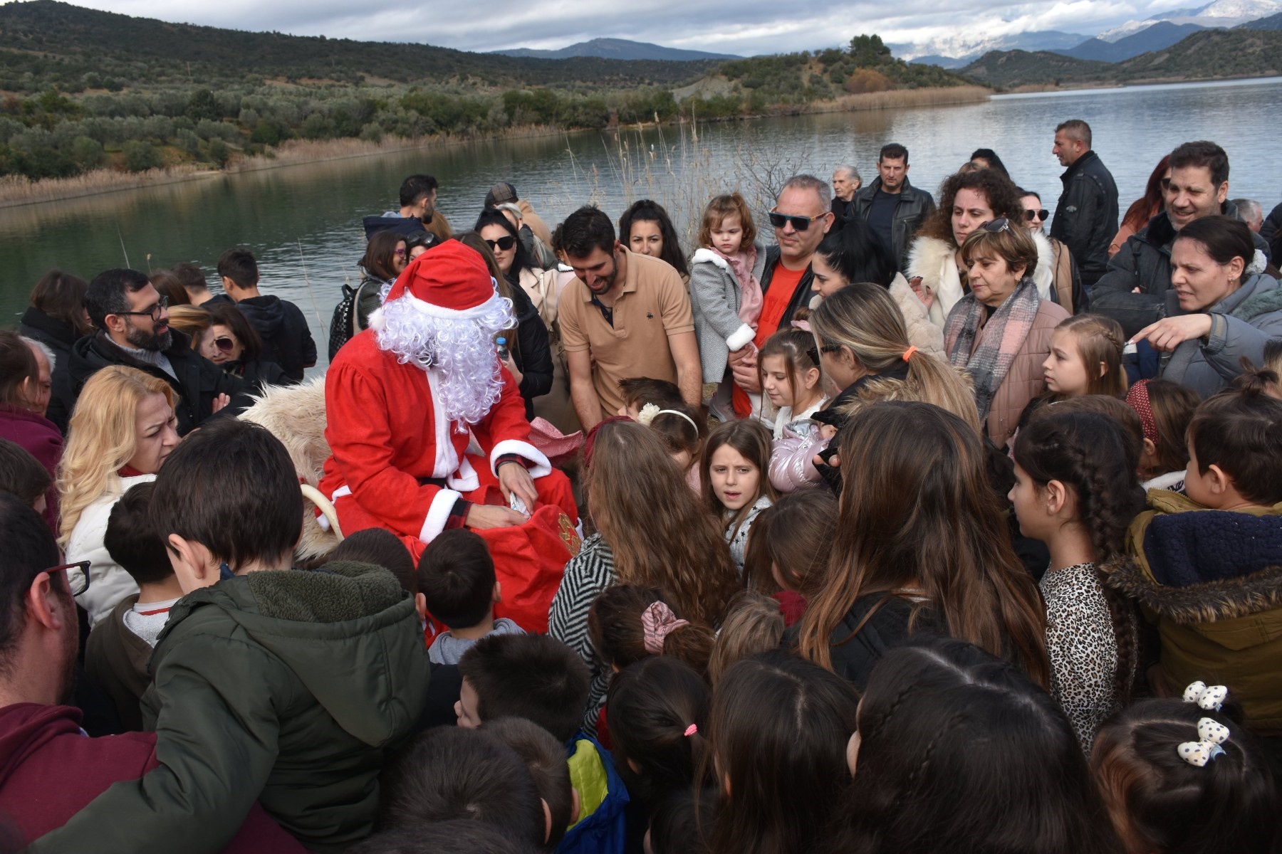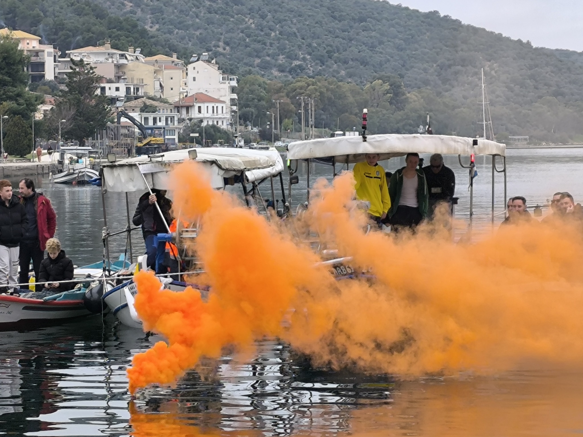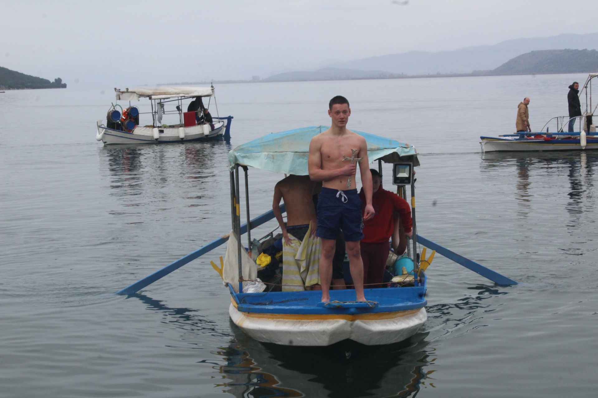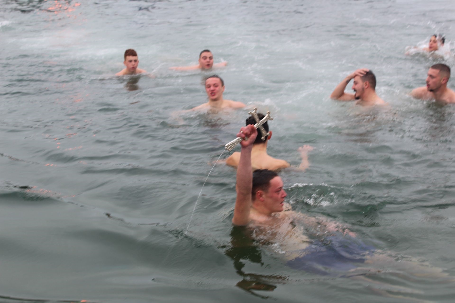 Ακολούθως τελέστηκε ο αγιασμός των υδάτων με τους δέκα κολυμβητές να πέφτουν από τις βάρκες στα κρύα νερά του Αμβρακικού για τον Τίμιο Σταυρό, τον οποίο έπιασε ο νεαρός Ερμής Κατσικοκέρης.
