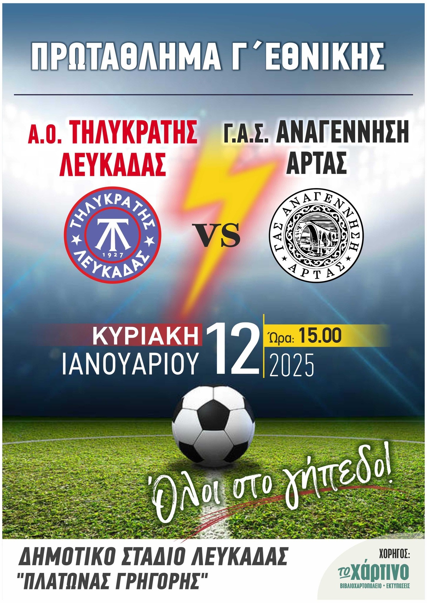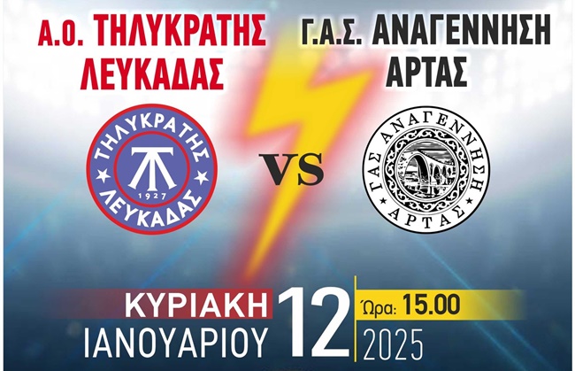 Την Αναγέννηση Άρτας θα υποδεχθεί την Κυριακή 12 Γενάρη, στις 3:00 το απόγευμα, στο Δημοτικό Στάδιο Λευκάδας «Πλάτωνας Γληγόρης», για την 18η αγωνιστικής της Γ΄ Εθνικής κατηγορίας (2ος όμιλος) ο Τηλυκράτης.