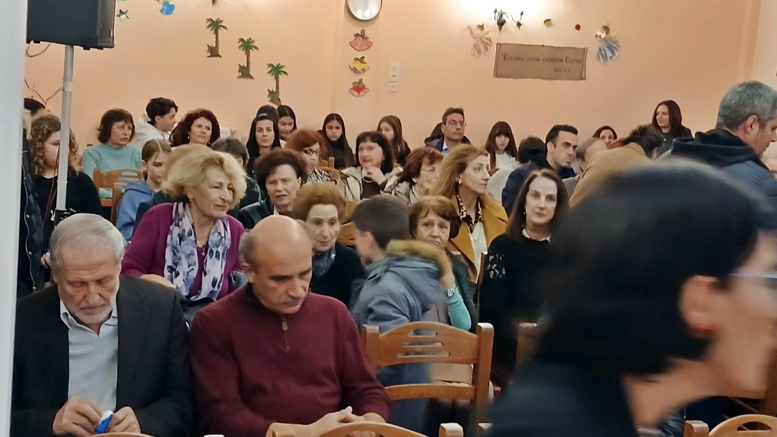 Η αίθουσα της Γ.Ε.Χ.Α. (Πανελλήνια Ένωση Γονέων η «Χριστιανική Αγωγή»), στο στενό του Παντοκράτορα. στάθηκε μικρή για να χωρέσει τους πολυπληθείς φίλους και τα μέλη του Μουσικοχορευτικού Ομίλου «Νέα Χορωδία Λευκάδας» που γέμισαν το μεσημέρι της Κυριακής 12 Ιανουαρίου 2025 ασφυκτικά το χώρο στην εκδήλωση κοπής της Πρωτοχρονιάτικης πίτας.