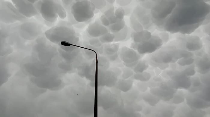 Ο λόγος για τα παράξενα σύννεφα «mammatus» η ονομασία των οποίων μεταφράζεται ως “μαστός” ή “στήθος” αποτελεί έναν ασυνήθιστο σχηματισμό νεφών ενώ η εντυπωσιακή τους εμφάνιση είναι πιο ορατή όταν ο ήλιος βρίσκεται χαμηλά στον ουρανό και οι θήκες τους πλαισιώνονται από το φως του ήλιου.