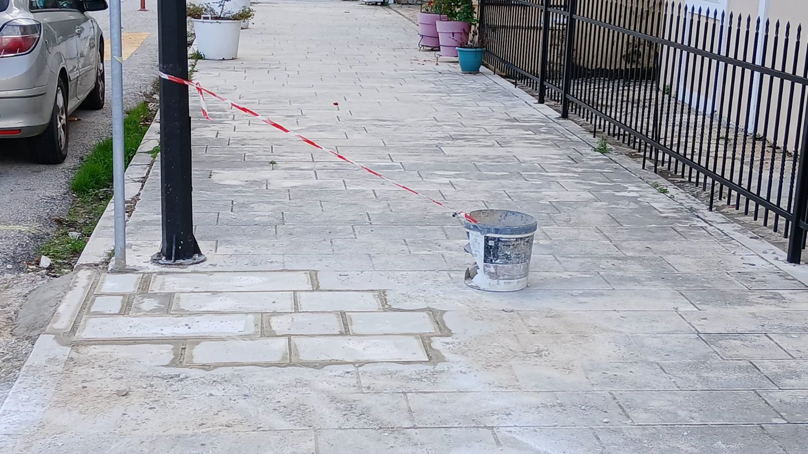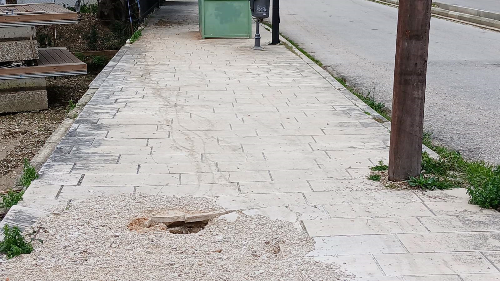 Υπάρχουν όμως ακόμη πολλά σημεία που το πεζοδρόμιο έχει υποστεί ζημιές και οι πλάκες είναι σπασμένες. Αυτό παρατηρείται συνήθως όπου ανεγείρονται ή έχουν ανεγερθεί στο παρελθόν οικοδομές ή γίνονται διάφορα έργα και έχουν να κάνουν με τα βαρέα οχήματα που ανεβαίνουν πάνω στο πεζοδρόμιο.