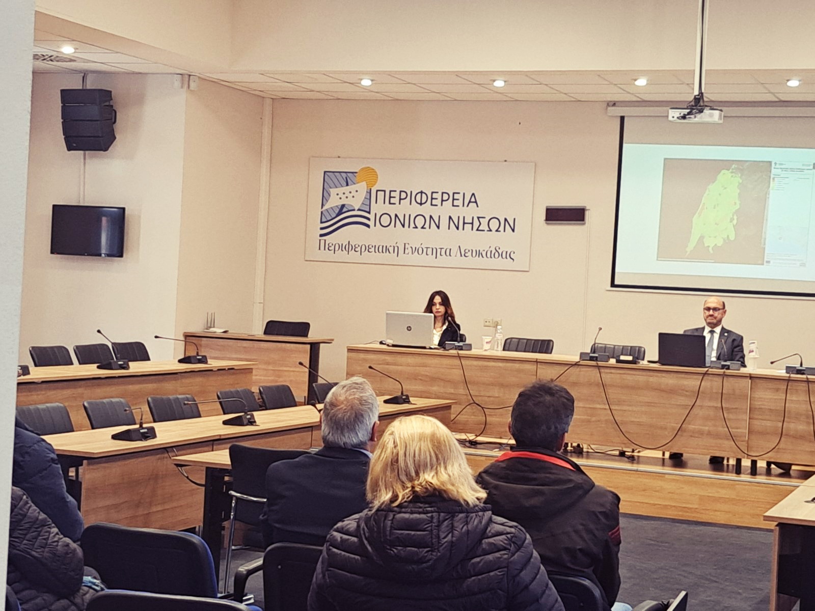 Χαιρετισμούς απηύθυναν ο Αντιπεριφερειάρχης Λευκάδας, κ Αντώνης Δουβίτσας και ο θεματικός Αντιπεριφερειάρχης χωροταξίας, περιβάλλοντος και κλιματικής αλλαγής της ΠΙΝ κ. Σπυρίδων Ιωάννου.