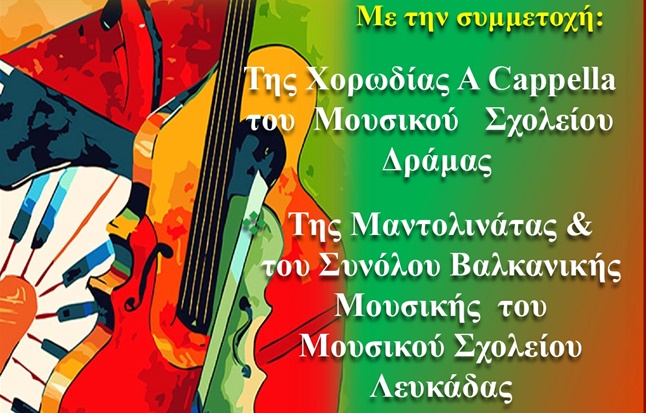 Στη συναυλία θα συμμετέχουν η Χορωδία Α Cappella του Μουσικού Σχολείου Δράμας και η Μαντολινάτα και το Σύνολο Βαλκανικής Μουσικής του Μουσικού Σχολείου Λευκάδας.