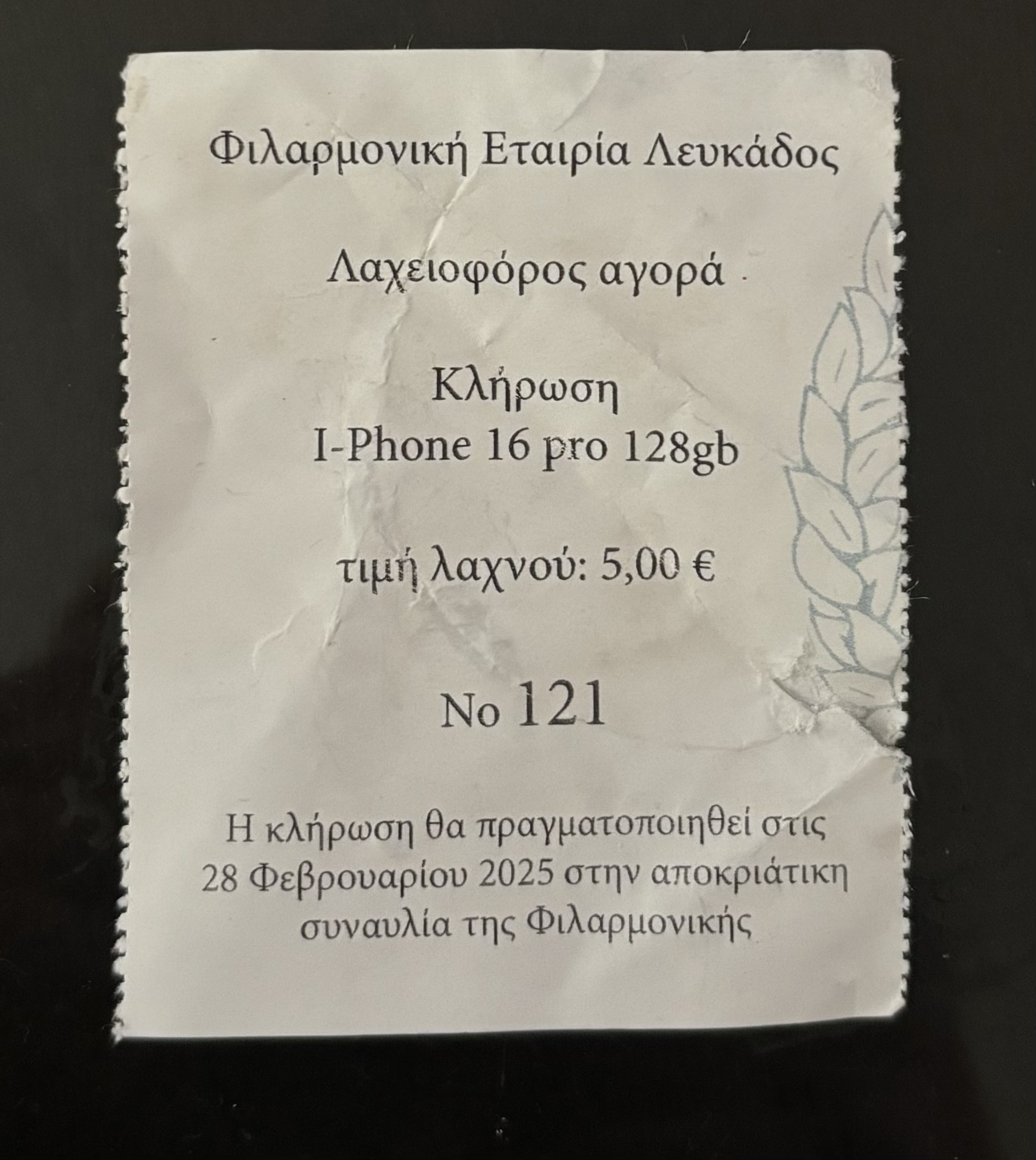 Το νούμερο 121 είναι ο τυχερός λαχνός της λαχειοφόρου της Φιλαρμονικής για το iPhone 16 Pro | Λευκαδίτικα Νέα - Lefkada News