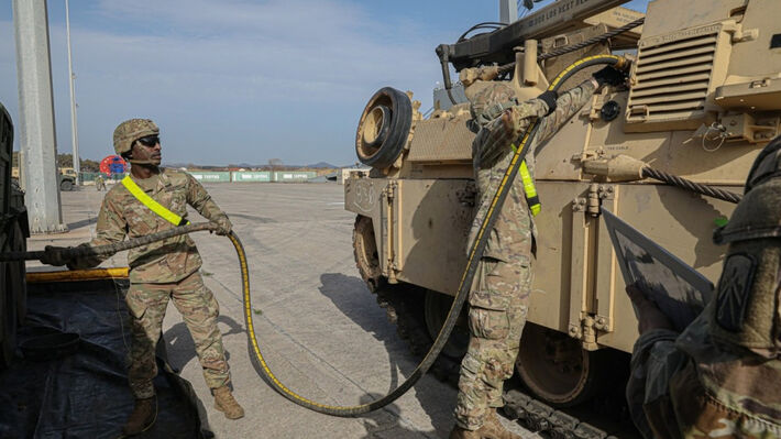 Αμερικανοί στρατιώτες εφοδιάζουν με καύσιμα όχημα στην Αλεξανδρούπολη