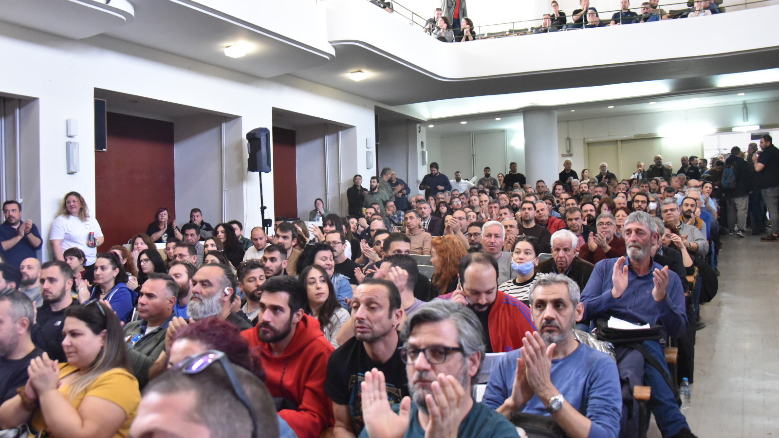 Συνδικαλιστές από δεκάδες σωματεία από όλη τη χώρα, από όλους τους κλάδους και από εκατοντάδες χώρους δουλειάς μετέφεραν στην Πανελλαδική Σύσκεψη του ΠΑΜΕ πoυ έγινε στην ασφυκτικά γεμάτη αίθουσα του Εργατικού Κέντρου Πειραιά, το αγωνιστικό κλίμα από τους συναδέλφους τους, τις ανάσες αισιοδοξίας που πήραν και έδωσαν από τη μεγάλη επιτυχία της απεργίας της 28ης Φλεβάρη, στα δύο χρόνια από το έγκλημα στα Τέμπη.