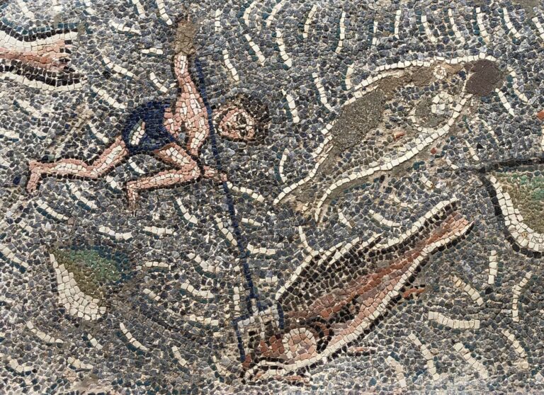 Τα ψηφιδωτά του Αρχαιολογικού χώρου αποτυπώνουν τον άρρηκτο δεσμό των κατοίκων της Νικόπολης με την αλιεία στον Αμβρακικό Κόλπο και το δελφίνι ως διαχρονικό σήμα αναγνώρισης της περιοχής μας.