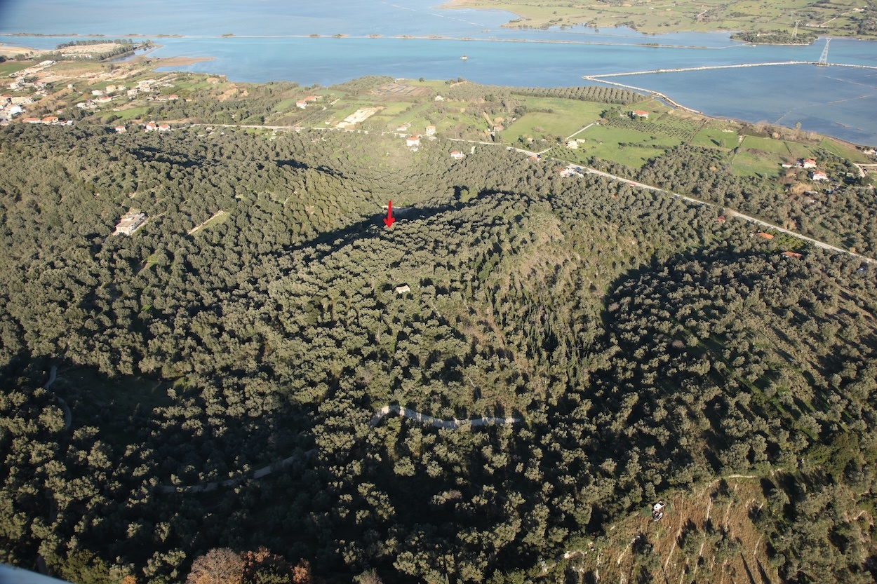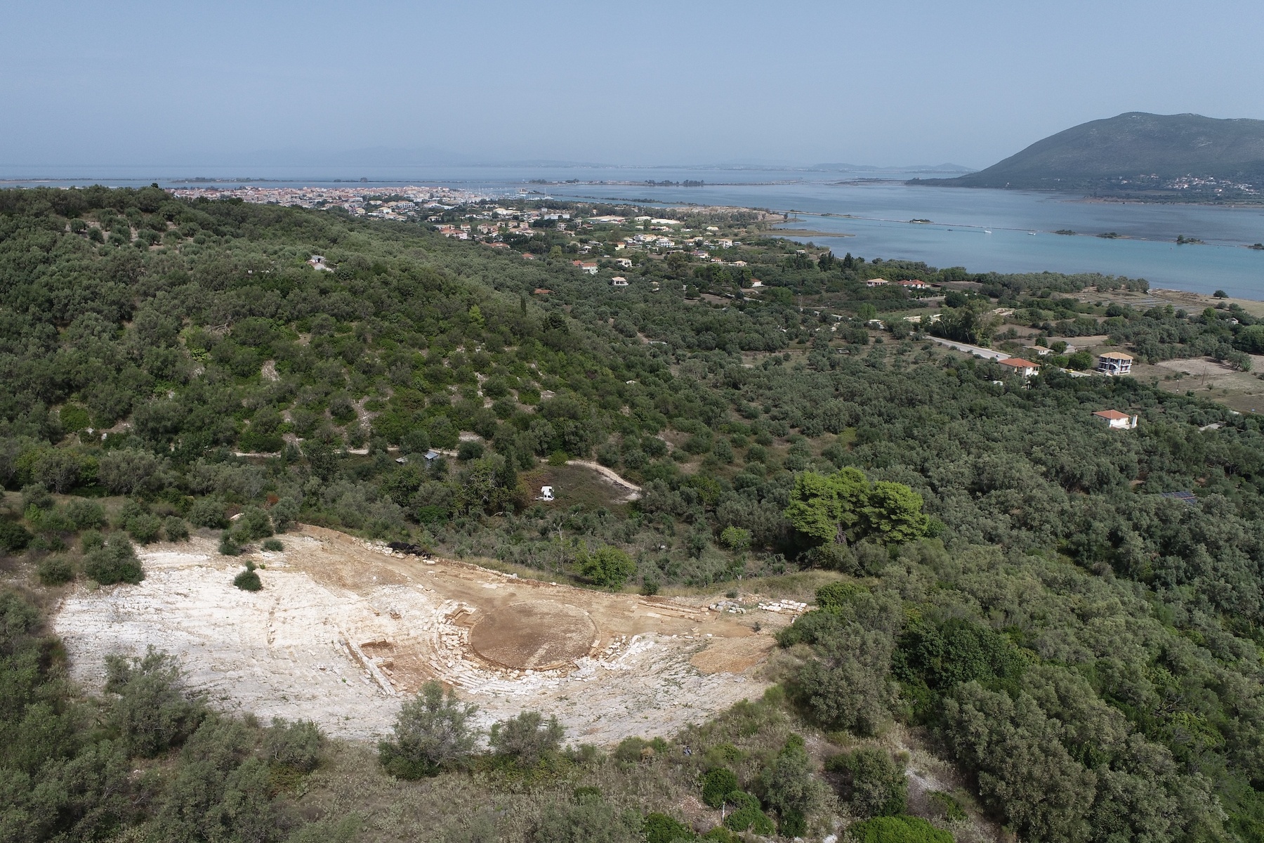 1. Η πόλη της αρχαίας Λευκάδας με τη θέση του θεάτρου. Στο βάθος διακρίνεται ο δίαυλος