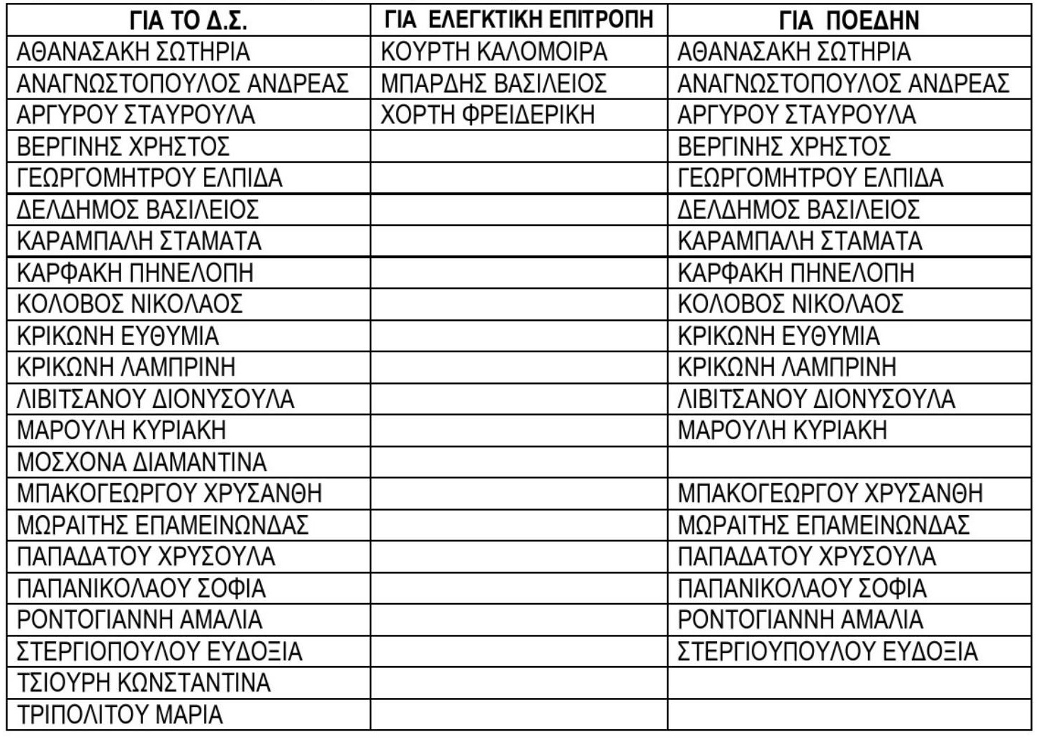 Υποψήφιοι με το ψηφοδέλτιο «Αγωνιστική Συσπείρωση» είναι με αλφαβητική σειρά των ονομάτων οι εξής: