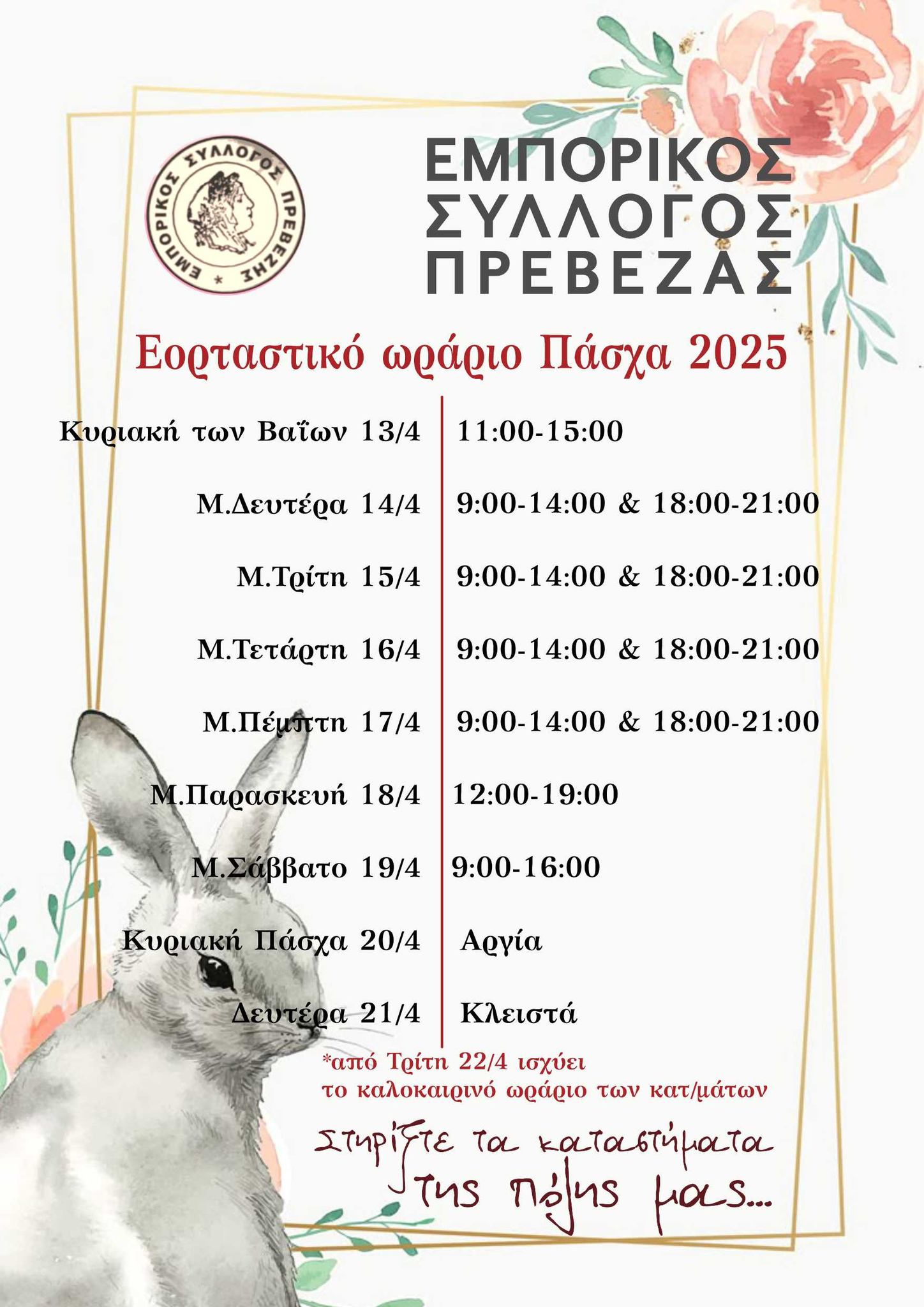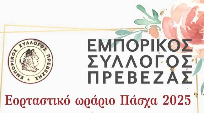 Το εορταστικό ωράριο από τον Εμπορικό Σύλλογο Πρέβεζας