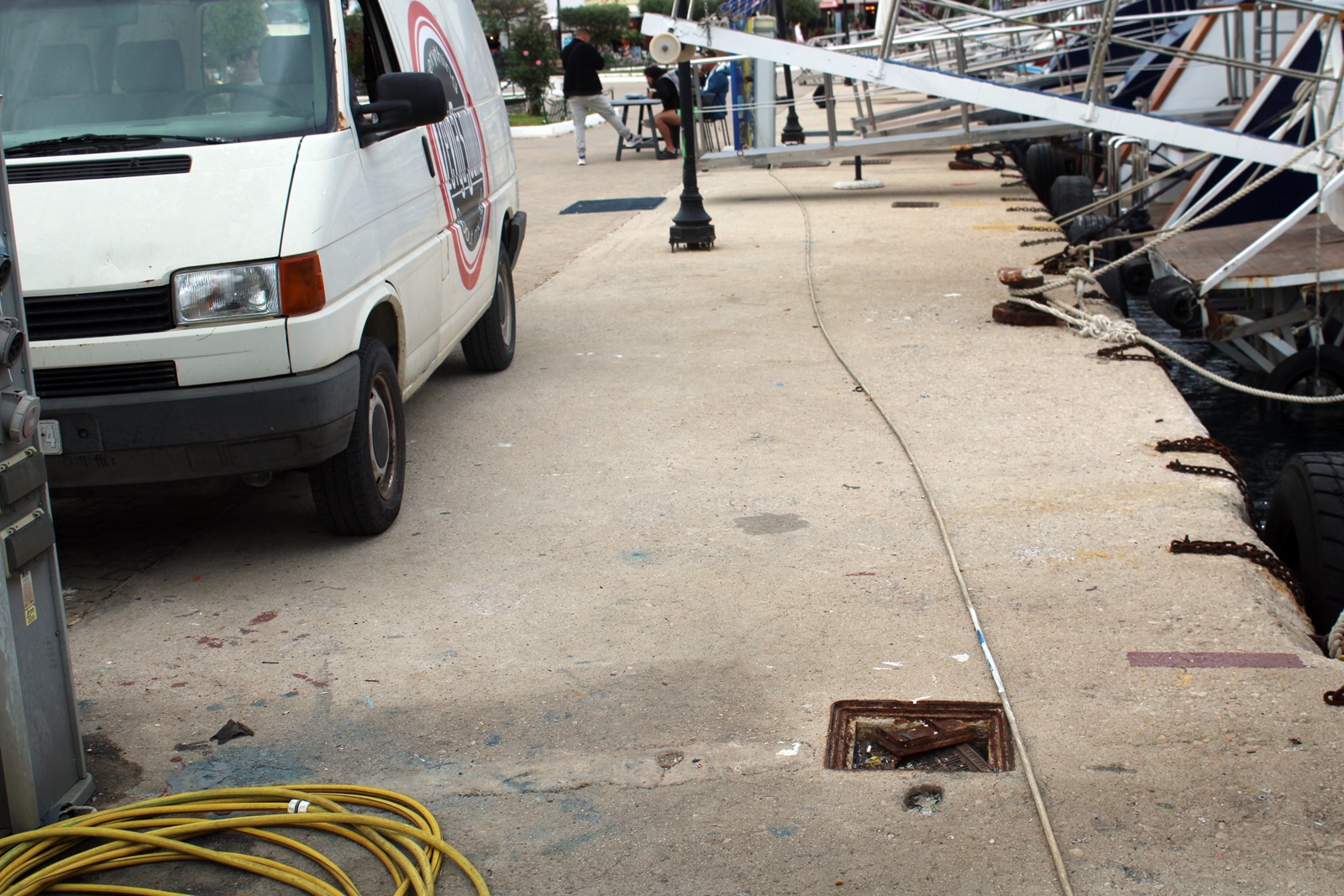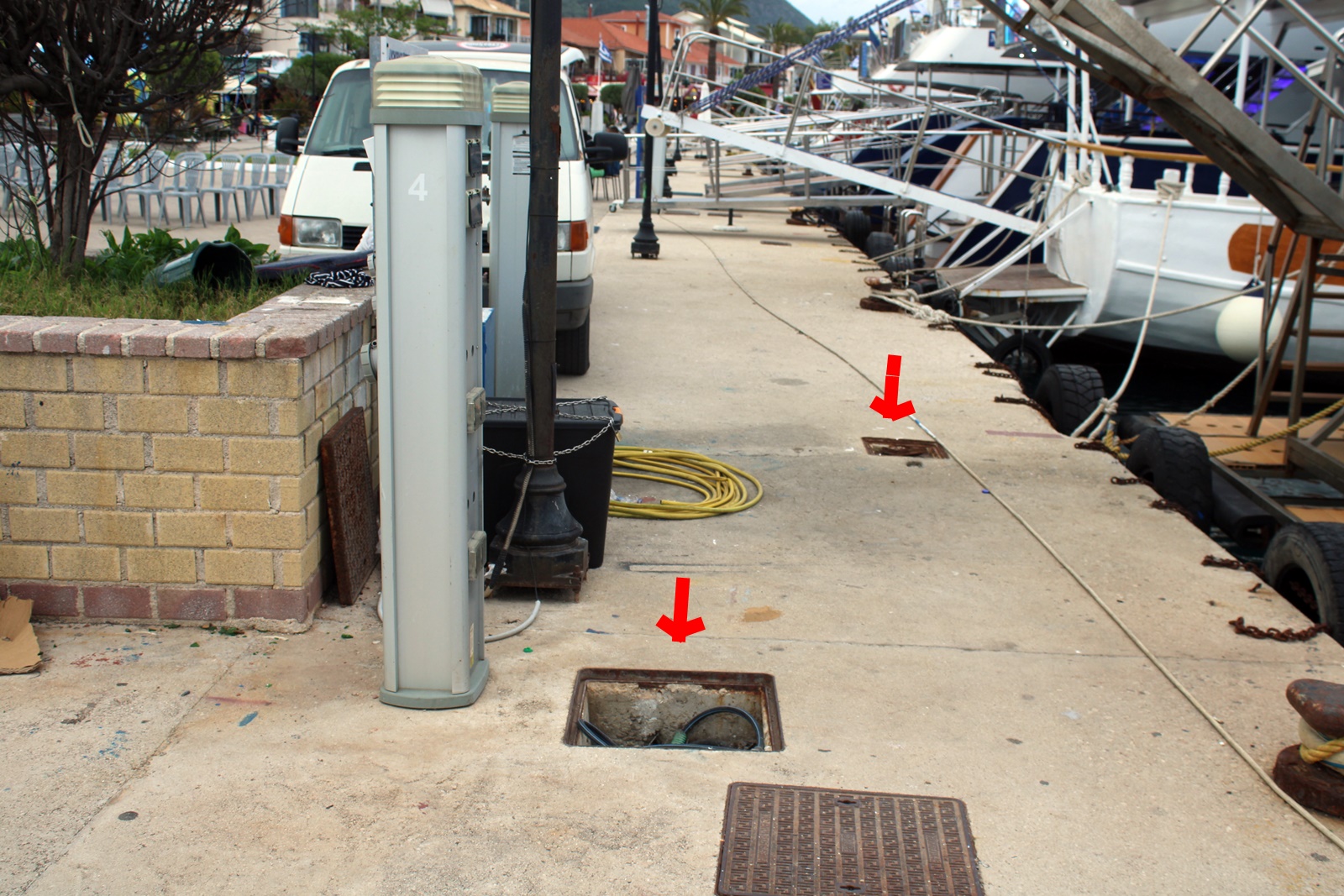 Στην άλλη άκρη του λιμανιού του Νυδριού, στο σημείο που δένουν τα ψαροκάικα, χάσκουν δύο ακόμη ανοιχτά φρεάτια. Μη σου λάχει να πατήσεις μέσα, δεν θα αποφύγεις τον ορθοπεδικό χειρούργο!