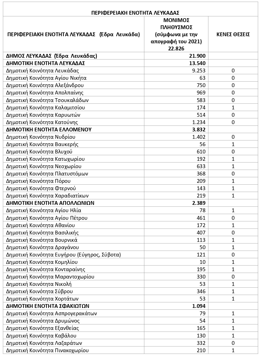 Από την Διεύθυνση Δημόσιας Υγείας και Κοινωνικής Μέριμνας της Περιφερειακής Ενότητας Λευκάδας ανακοινώνεται ο πίνακας με τις κενές θέσεις φαρμακείων, όπως αυτές υφίσταντο μέχρι και την 31η Μαΐου 2025, για χορήγηση άδειας ίδρυσης φαρμακείου στην Περιφερειακή Ενότητα Λευκάδας, όπως παρακάτω: