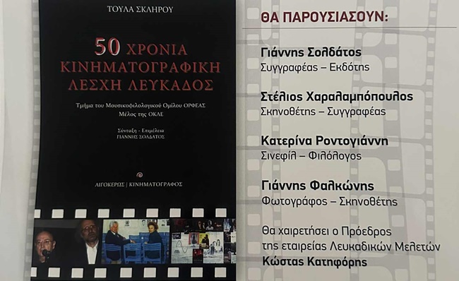 Παρουσίαση του βιβλίου «50 χρόνια Κινηματογραφική Λέσχη Λευκάδας» της Τούλας Σκληρού
