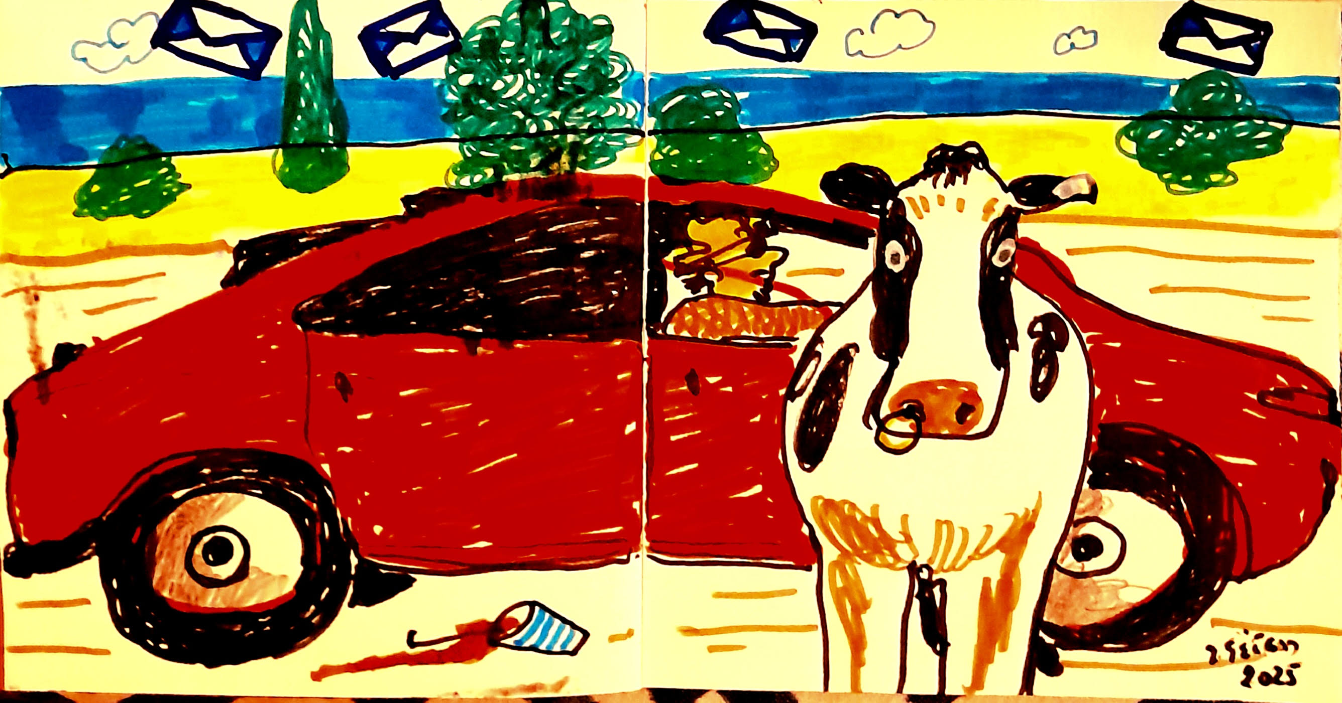 Το παράπονο μιας αγελάδας: Εμένα μου παίρνουν το γάλα, το μωρό μου και στο τέλος εμένα την ίδια δηλώνοντας ότι είμαι 1000 φορές Εγώ. Σ΄ εκείνους και στους δικούς τους δίνουν ένα μάτσο ευρώ, μία Πόρσε, μία επιστολική ψήφο και έναν Φραπέ για το δρόμο.
