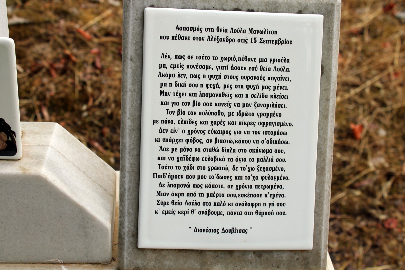 Η κτητορική εκκλησία της Κοιμήσεως της Θεοτόκου βρίσκεται ένα περίπου χλμ. νότια του χωριού Μαυρογιαννάτα Αλεξάνδρου. Ιδρύθηκε από τη χήρα Σινιόρα Ιωάννου Σέρβου και την κόρη της Αναστασία, σύζυγο του παντοδύναμου Βενετσάνου στρατιωτικού Κόντε Άγγελου Όριο. Πάνω από τη δυτική είσοδο του ναού υπάρχει αψιδωτή κόγχη όπου αναγράφεται το έτος 1795, ενώ πιο πάνω υπάρχει ανάγλυφος σταυρός που στο κάτω μέρος του φέρει την επιγραφή «ΑΝΕΚΕΝ…». Η χρονολογία αυτή ίσως να παραπέμπει στην ανακαίνιση της εκκλησίας.