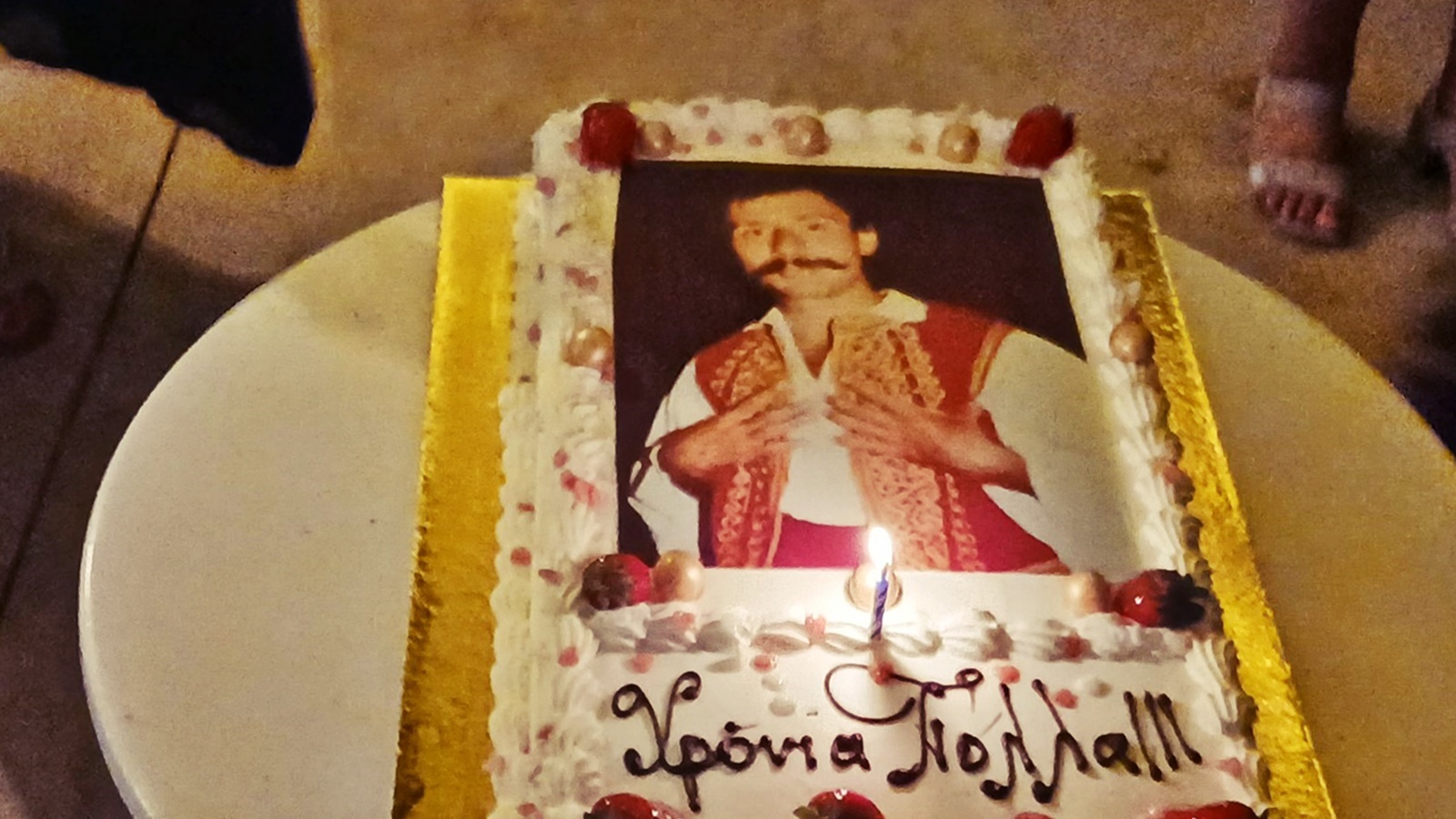 Ευχάριστη έκπληξη αποτέλεσε ο ερχομός για το σκοπό αυτό του γιου του Παναγιώτη μετά της συζύγου του από τη Γερμανία. Η τούρτα ήταν διακοσμημένη -δεν θα μπορούσε να είναι και αλλιώς- με μία φωτογραφία του εορτάζοντα με παραδοσιακή στολή.
