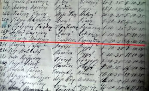 Βιβλίο συμβάντων του νοσοκομείου Λευκάδας, με το όνομα του στρατιώτη που χτυπήθηκε με πιστόλι από χωροφύλακα γιατί αρνήθηκε να πυροβολήσει τους διαδηλωτές