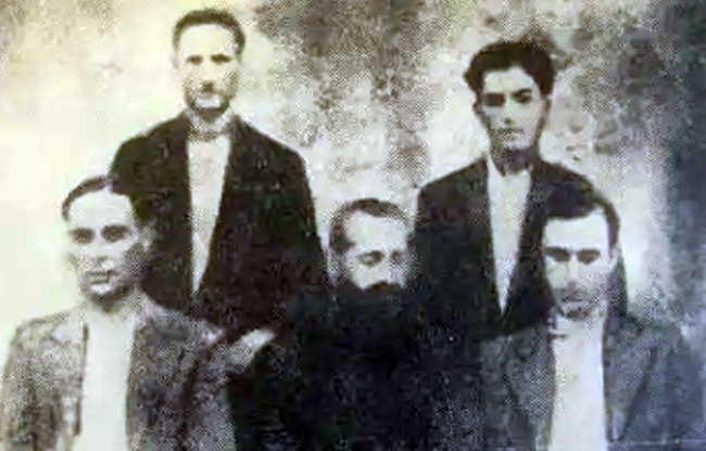 Οι πέντε από τους έξι προφυλακισμένους «πρωταίτιους» του συλλαλητηρίου: Από αριστερά καθιστοί οι Φώντας Κούρτης, παπα-Στάθης Κτενάς, Κώστας Λιβιτσάνος. Όρθιοι οι Θεοδόσης Λιβιτσάνος και Λεωνίδας Φίλιππας