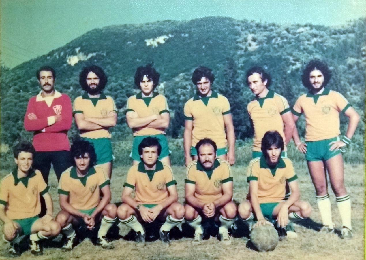 Η συγκέντρωση, οι προπονήσεις και τα μεταξύ μας παιγνίδια δινόταν εκεί, στο μικρό γηπεδάκι δίπλα στο σπίτι μας, στην ¨κοινότητα¨.. Πήγαινα λοιπόν κι έβλεπα τους μεγάλους, τον Τζέτζελα, τον Κοντή (τερματοφύλακα), τον Γιώργο Σαββίνο, τον Μάκη τον Καπώνη, τον Γιώργο τον αγροφύλακα, τον Νίκο τον Μπουμπλή κι αργότερα το Σπύρο και τον Νίκο τον Μπάκα, τον Γκελεχάνα, τον Νίκο και τον Άγγελο τον Αργυρό, τον Παπαλίνα, τον Γιώργο τον Μπομπόνα, τον Φάνη τον Βουκελάτο, τον Γιάνναρο, τον Φλίππο του Μαρή και άλλους που ανάμεσα σε φωνές και κλωτσές γινόταν ο χαμός όταν έμπαινε αλλά κι όταν χανόταν ένα γκολ! Κι ήταν αληθινό μάθημα για όλους μας όταν ο Φλίππος ο Μαρής που μου φαίνεται ότι κατείχε το… άθλημα, μας φώναζε «άντε ρε και δεν είναι καθαρεύουσα». Του το θυμίζω καμιά φορά και συγκινείται ο αγαπητός μας Φίλιππος . Τρέχαμε από δω κι από κει, στραβοκλωτσάγαμε, άλλος τα κατάφερνε καλύτερα όπως ο Σπύρος ο Ντάντης, σκέτο κλάδεμα στα μπακ ή ο Πάνος ο Σολδάτος που ήταν τεχνίτης αλλά μας έφυγε με «μεταγραφή» στην… Ιταλία. Όλο και κάνα μπράβο παίρναμε απ’ το Φλίππο και την άλλη φορά μας έβανε πιο εύκολα μέσα. Τι να πούμε και για τα παπούτσια που φοράγαμε. Όλα δεμένα με κλωστές και σκοινιά.Σπάνια έφερνε κανένας όταν ερχόταν