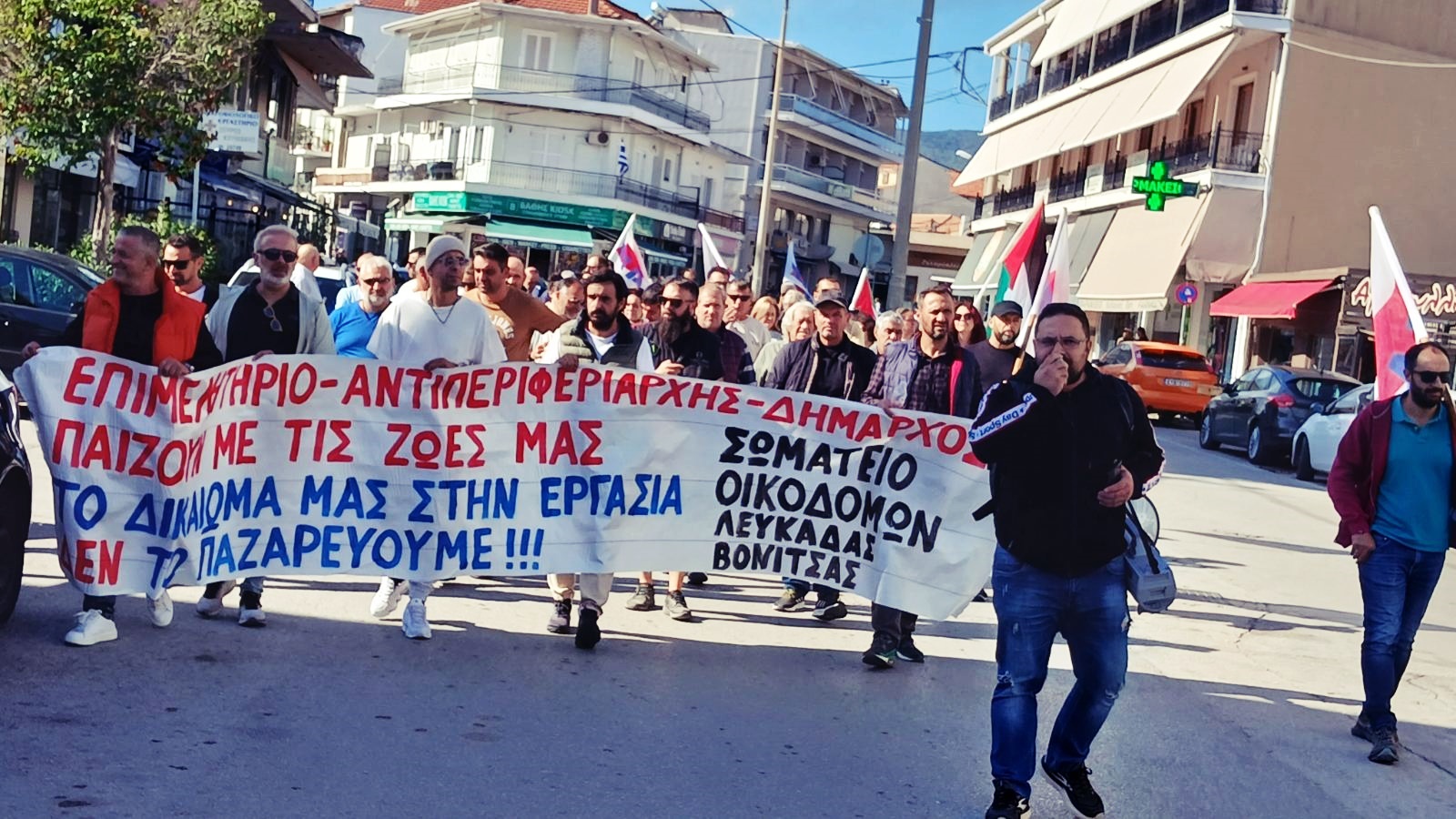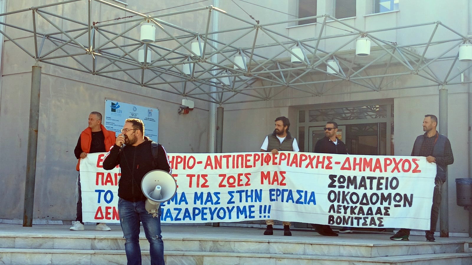 Στην κεντρική ομιλία ο Μάκης Βεροιώτης, πρόεδρος στου συνδικάτου Οικοδόμων και συναφών επαγγελμάτων Λευκάδας-Βόνιτσας, αφού σημείωσε ότι οι μεγαλοεργοδότες περιμένουν πως και πως το αντεργατικό τερατούργημα της κυβέρνησης για τις 13 ώρες δουλειάς, πρόσθεσε: