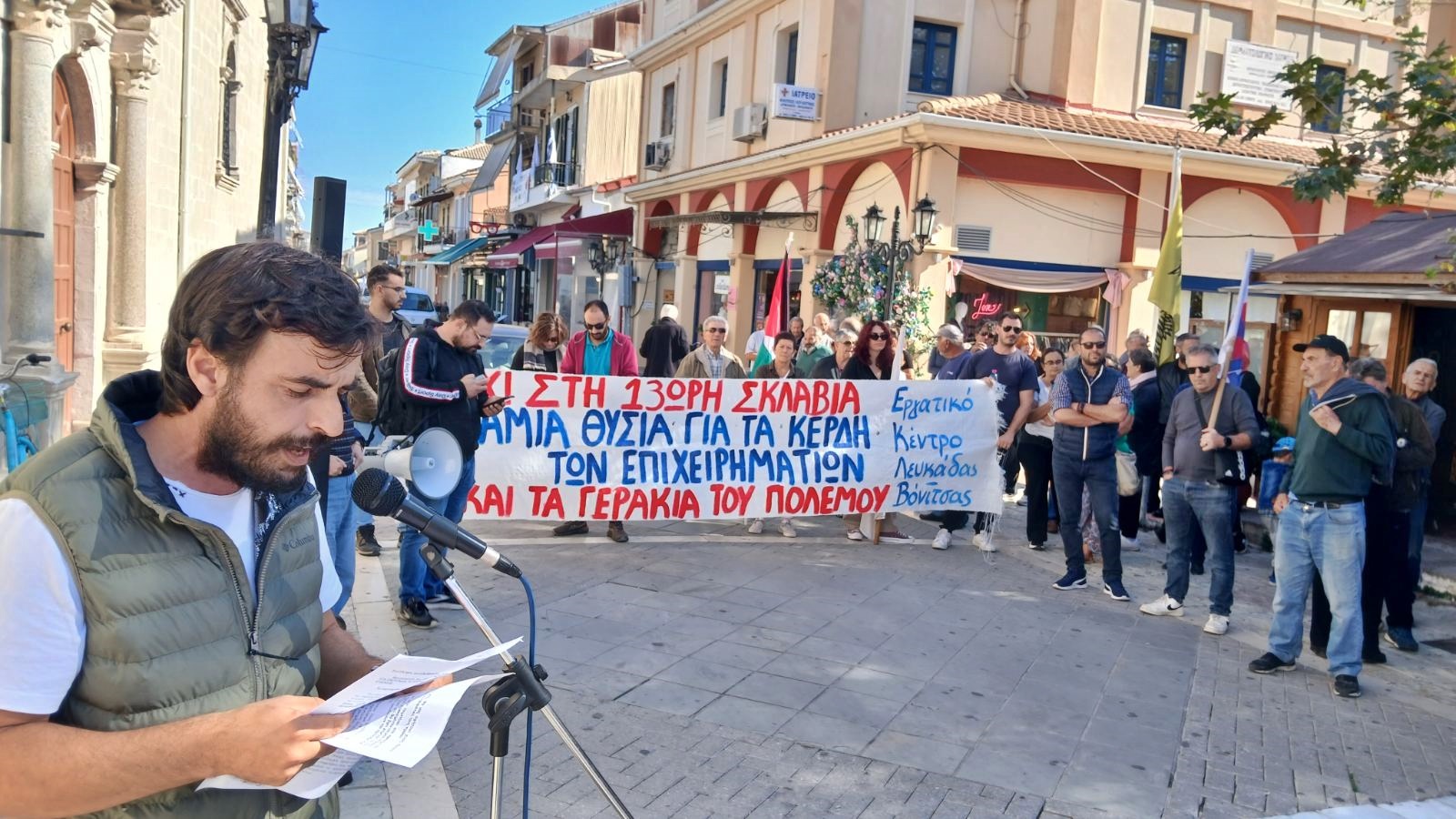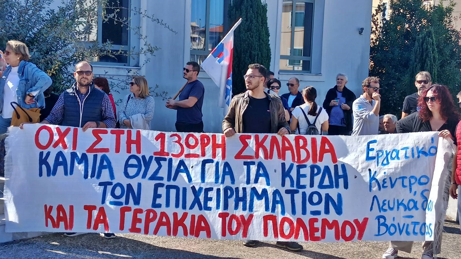 Στο Διοικητήριο Λευκάδας, όπου συστεγάζονται ο Δήμος και η Περιφερειακή Ενότητα, κατέληξε η σημερινή απεργιακή συγκέντρωση που διοργάνωσε στην πόλη της Λευκάδας το Εργατικό Κέντρο Λευκάδας-Βόνιτσας ενάντια στο νομοσχέδιο-έκτρωμα για τη 13ωρη δουλειά, λόγω της επιχειρούμενης διακοπής των «οχλουσών οικοδομικών εργασιών» κατά την διάρκεια του καλοκαιριού, κατ΄ απαίτηση των μεγαλοεπιχειρηματιών που δραστηριοποιούνται στον κλάδο της φιλοξενίας και της διαχείρισης ακινήτων.