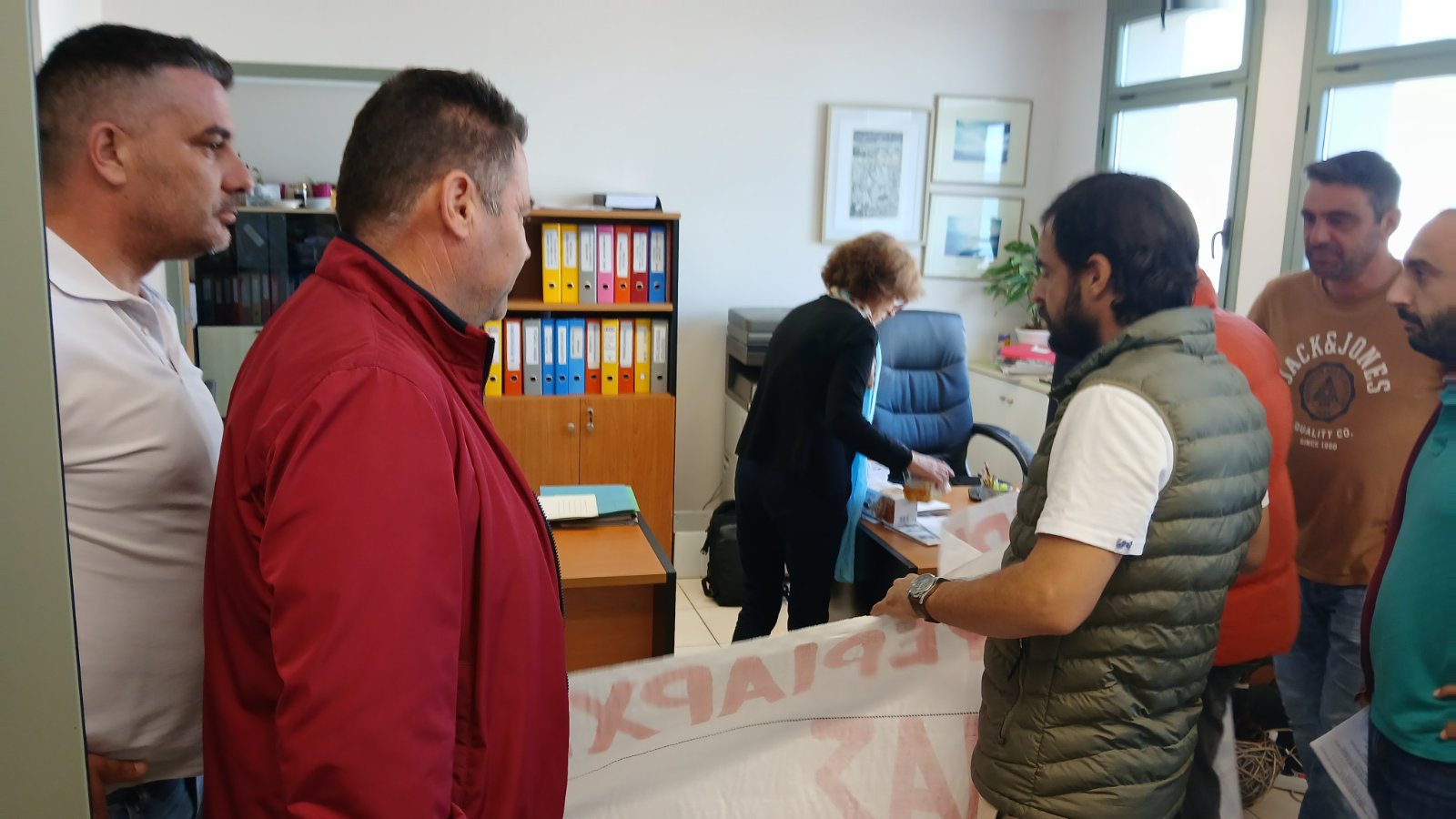 Ας καλέσει όποιον θέλει ο κ. Βεργίνης. Εμείς ξέρουμε καλά ότι οι σχεδιασμοί και οι νόμοι τους ανατρέπονται μόνο με την οργανωμένη ταξική πάλη. Γιατί νόμος για μας είναι το δίκιο του εργάτη! Και δεν πρόκειται να μείνουμε με σταυρωμένα χέρια όταν διακυβεύεται το ψωμί το δικό μας και των παιδιών μας!»