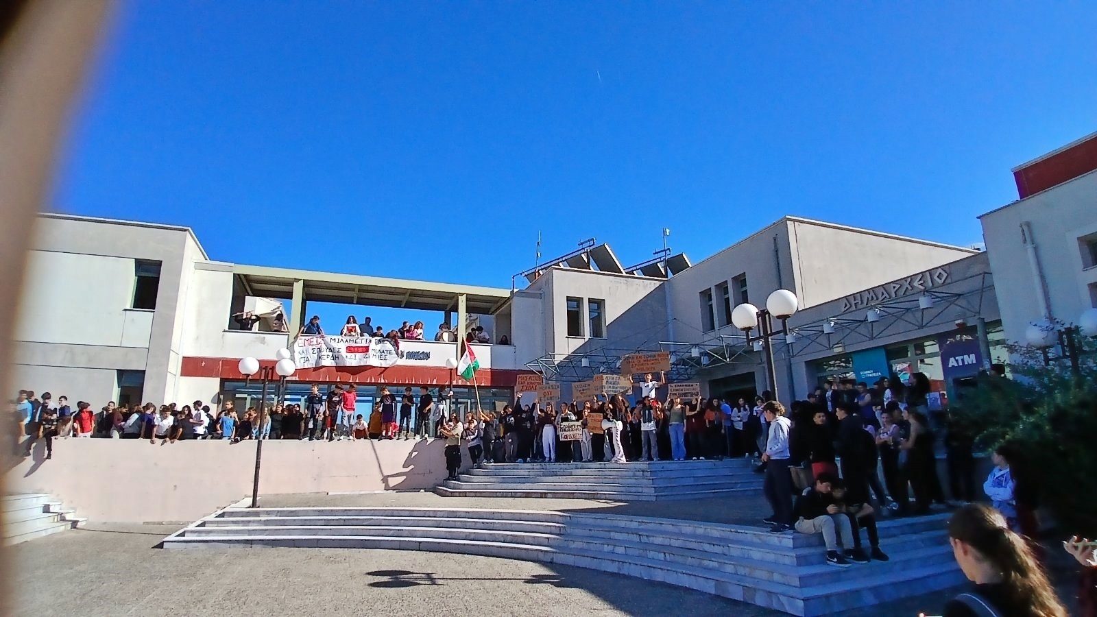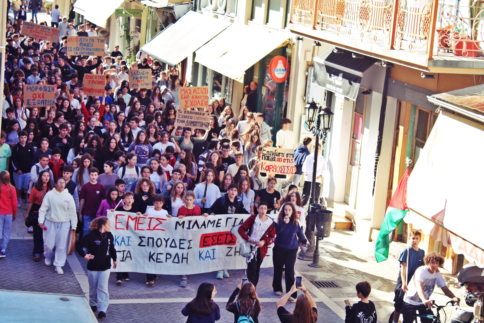 Οι μαθητές συγκεντρώθηκαν στην πλατεία του Αγίου Μηνά και έκαναν πορεία στην Κεντρική Αγορά που κατέληξε, μετά από σύντομη στάση στο Διοικητήριο, στη Διεύθυνση Πρωτοβάθμιας και Δευτεροβάθμιας Εκπαίδευσης, μέσω της παραλιακής οδού Δημ. Γολέμη.