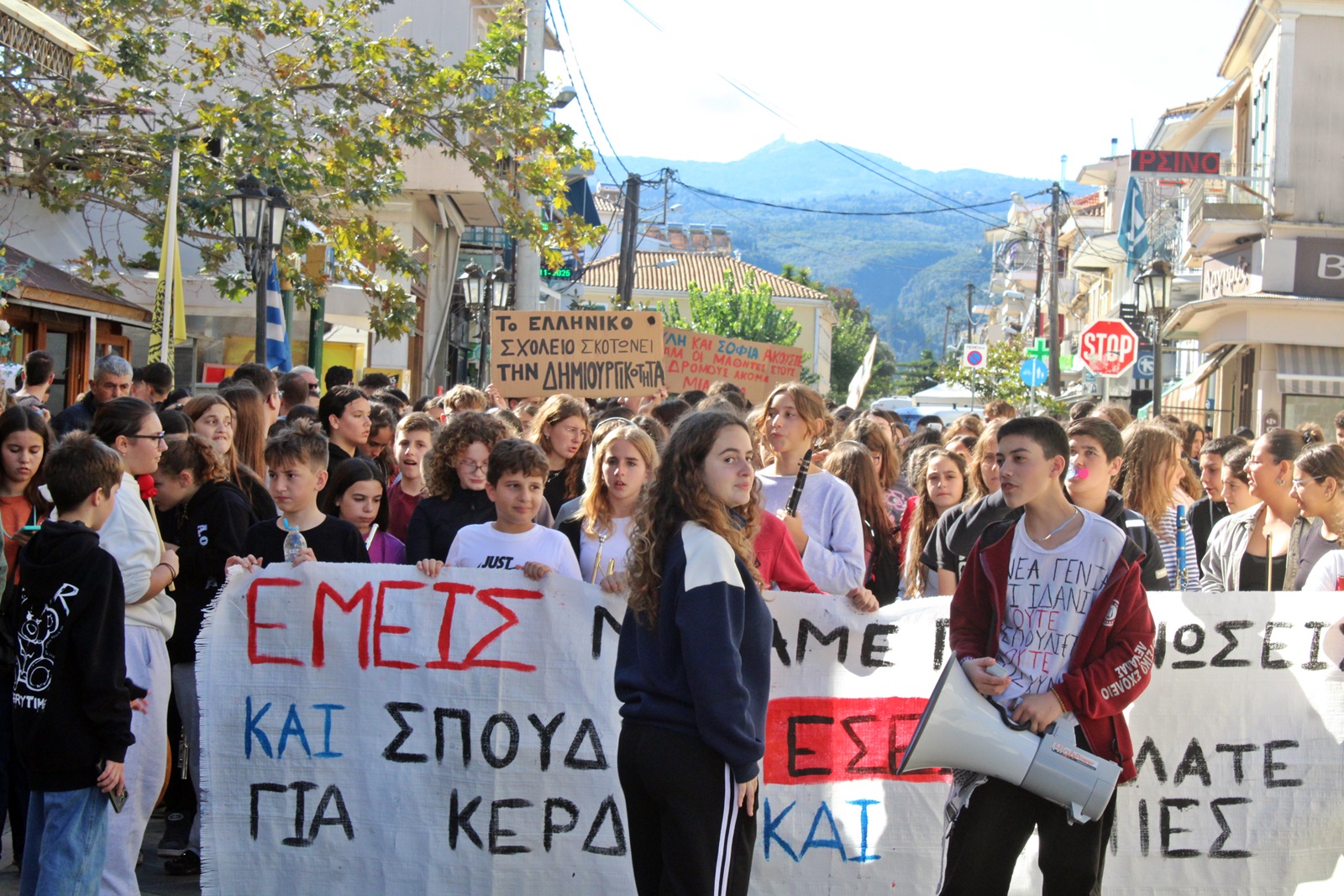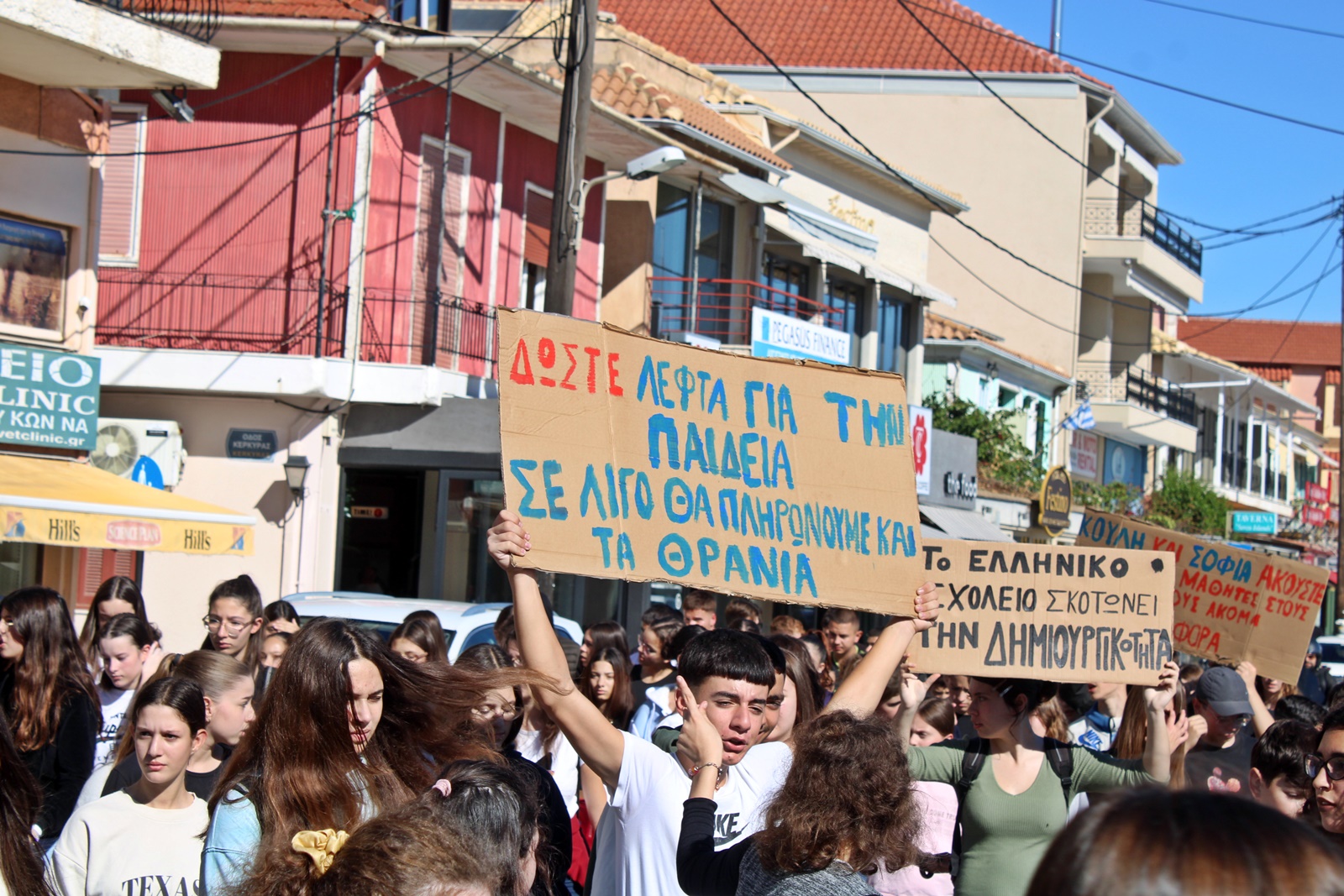 Με συνθήματα και μουσική, οι μαθητές της Λευκάδας διαδήλωσαν για ένα καλύτερο σχολείο