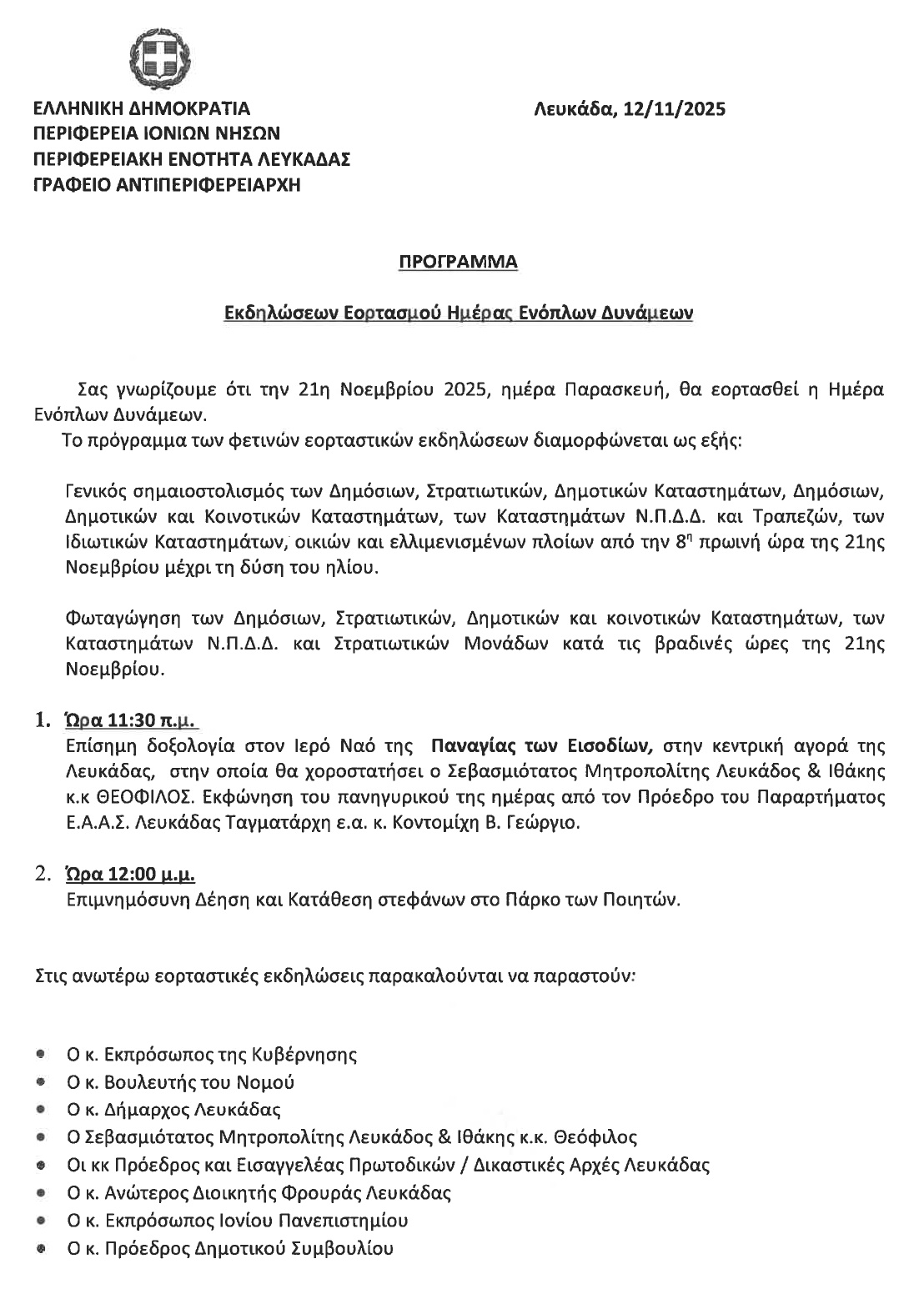 Πρόγραμμα Εκδηλώσεων Εορτασμού Ημέρας Ενόπλων Δυνάμεων | Λευκαδίτικα Νέα - Lefkada News