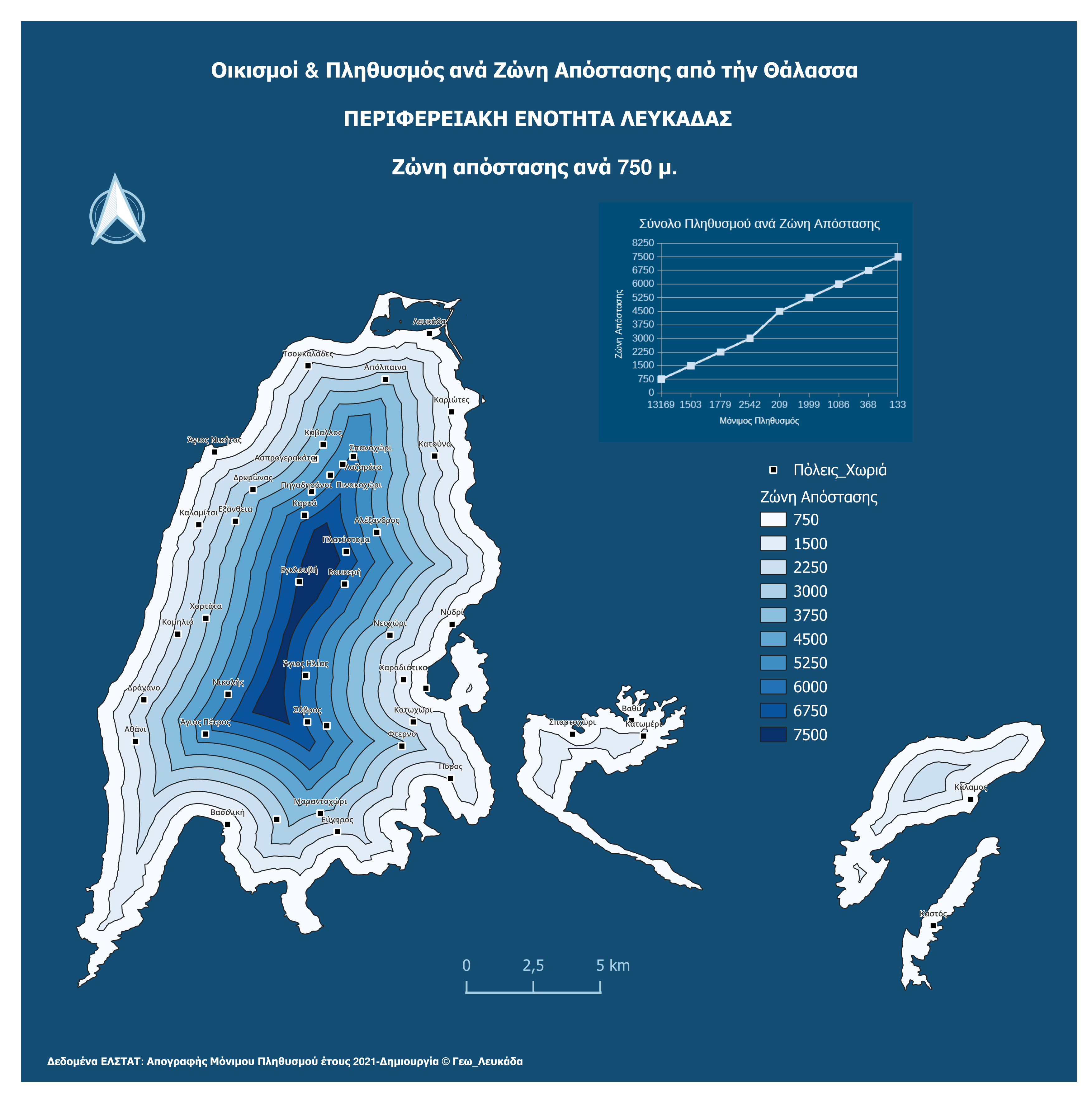 Περιφερειακή Ενότητα Λευκάδας: Οικισμοί και πληθυσμός ανά ζώνη απόστασης από την ακτή