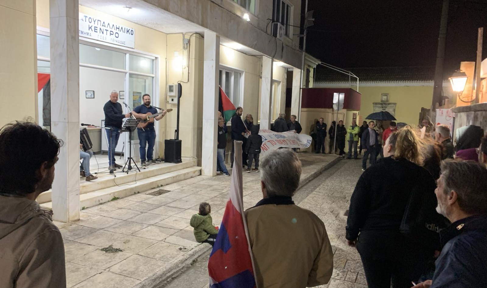 Η πορεία κατέληξε στο Εργατικό Κέντρο, όπου η πρόεδρος της Επιτροπής Ειρήνης Λευκάδας, Βιβή Σταματέλου, απηύθυνε χαιρετισμό. Ακολούθησε μουσικό αφιέρωμα στον Μίκη Θεοδωράκη από τους Στέλιο Ζαβιτσάνο, Απόστολο Καραβία και Βαγγέλη Βερροιώτη, με τραγούδια που συνδέονται με την αντιδικτατορική πάλη, ενισχύοντας το μήνυμα του Πολυτεχνείου και τον ρόλο της μουσικής ως εργαλείο αφύπνισης και ενότητας.