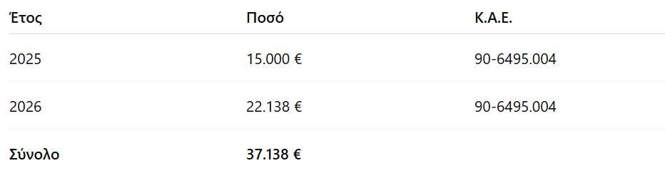 Σύμφωνα με τη βεβαίωση της Οικονομικής Υπηρεσίας, υπάρχει διαθέσιμη πίστωση για το ποσό των 15.000 € του 2025, ενώ η δαπάνη πληροί τις προϋποθέσεις της παρ. 1α του άρθρου 4 του Π.Δ. 80/2016. Η δέσμευση καταχωρήθηκε στο Μητρώο Δεσμεύσεων με α/α 1, με υπόλοιπο προς ανάληψη 22.200 €.
