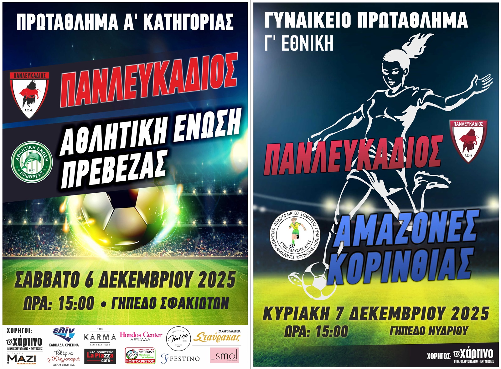Η γυναικεία ομάδα του Πανλευκάδιου θα υποδεχτεί την Κυριακή 7 Δεκεμβρίου 2025, στις 3:00 το απόγευμα, στο Γήπεδο Νυδριού, τις Αμαζόνες Κορίνθου για την 6η αγωνιστικής της Γ΄ Εθνικής Κατηγορίας (3ος όμιλος).