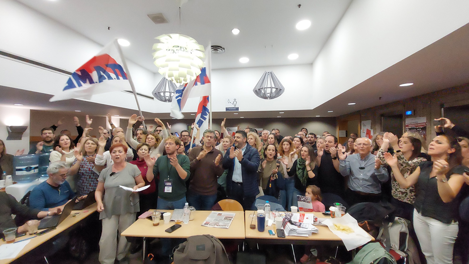 Οι σύνεδροι γύρισαν την πλάτη στα ψηφοδέλτια του προηγούμενου συνδυασμού ΣΥΡΙΖΑ – Νέας Αριστεράς, του οποίου τα στελέχη τους έχουν ήδη σπεύσει να κρατήσουν θέση στο άρμα του Τσίπρα. Οι εργαζόμενοι έστειλαν μήνυμα ότι τα «ταξίδια στις πιο όμορφες θάλασσες» δεν μπορούν να γίνουν με βάρκες φτιαγμένες από τα σάπια υλικά της σοσιαλδημοκρατίας.